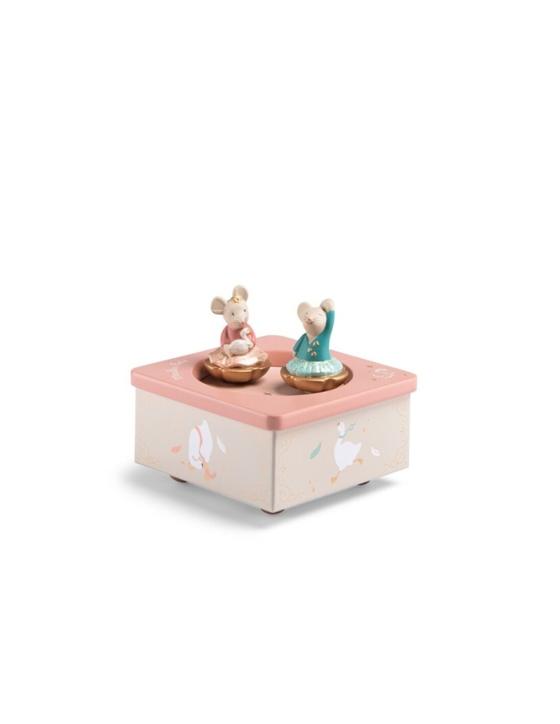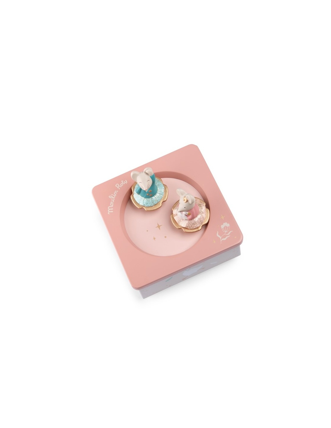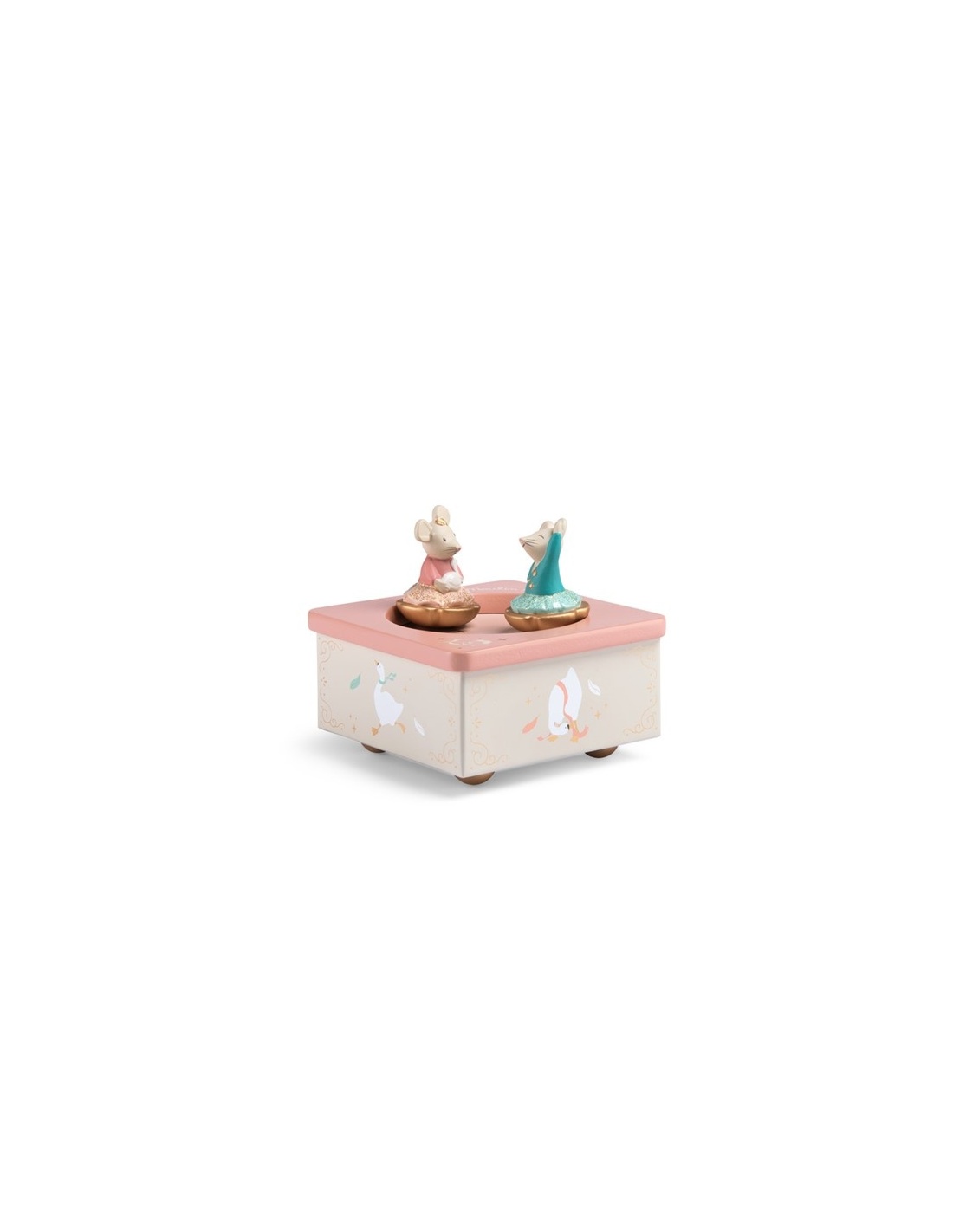 ¡Una encantadora caja de música infantil, protagonizada por los divertidos personajes de Moulin Roty! Las ratitas de la colección "La pequeña escuela de la Danza" giran y giran al compás de una melodiosa canción. Con ilustraciones llenas de elementos naturales en suaves tonos pastel, no solo ofrecerá horas de diversión, sino que también añadirá un toque mágico a la decoración, ¡perfecto para peques… y no tan peques!