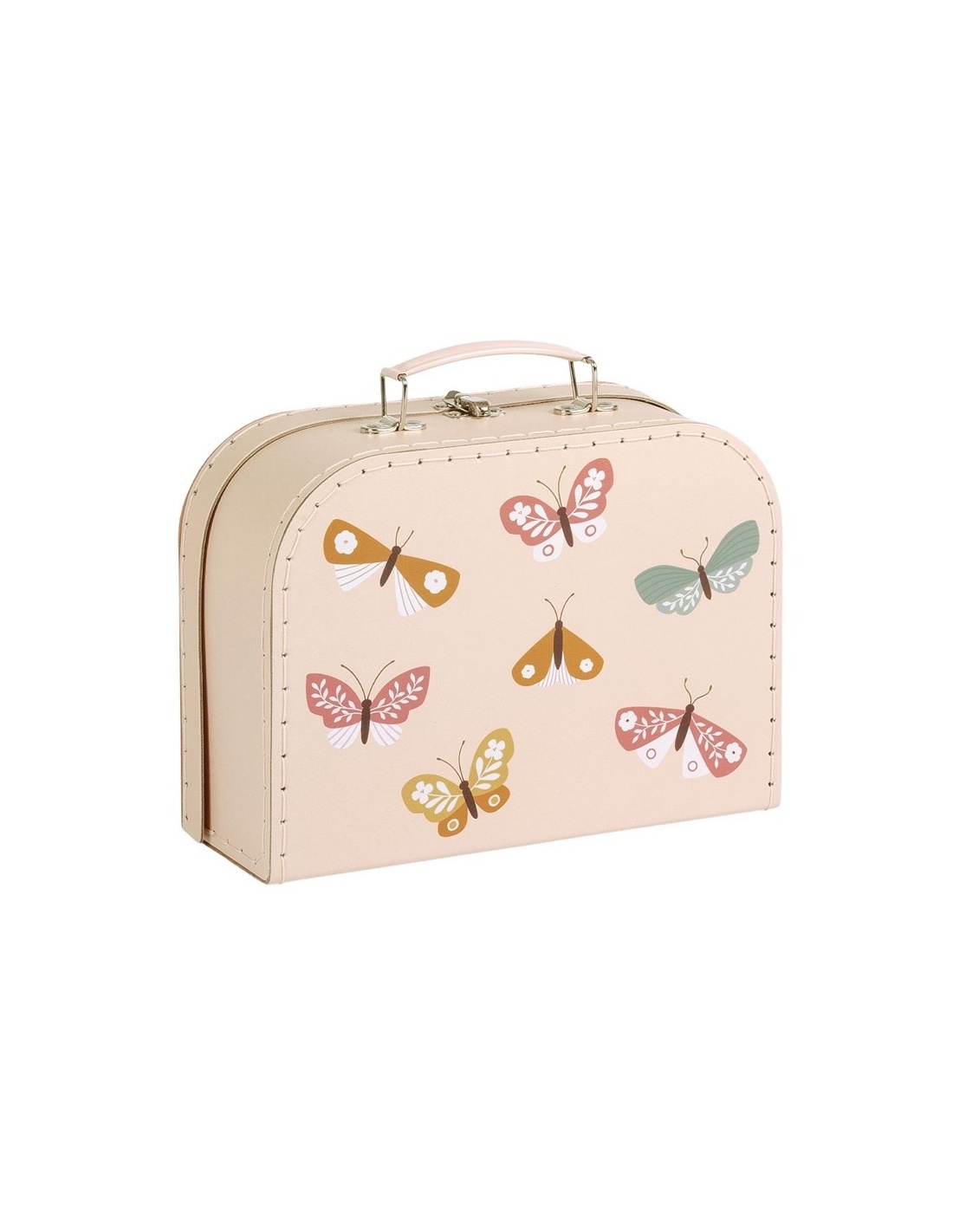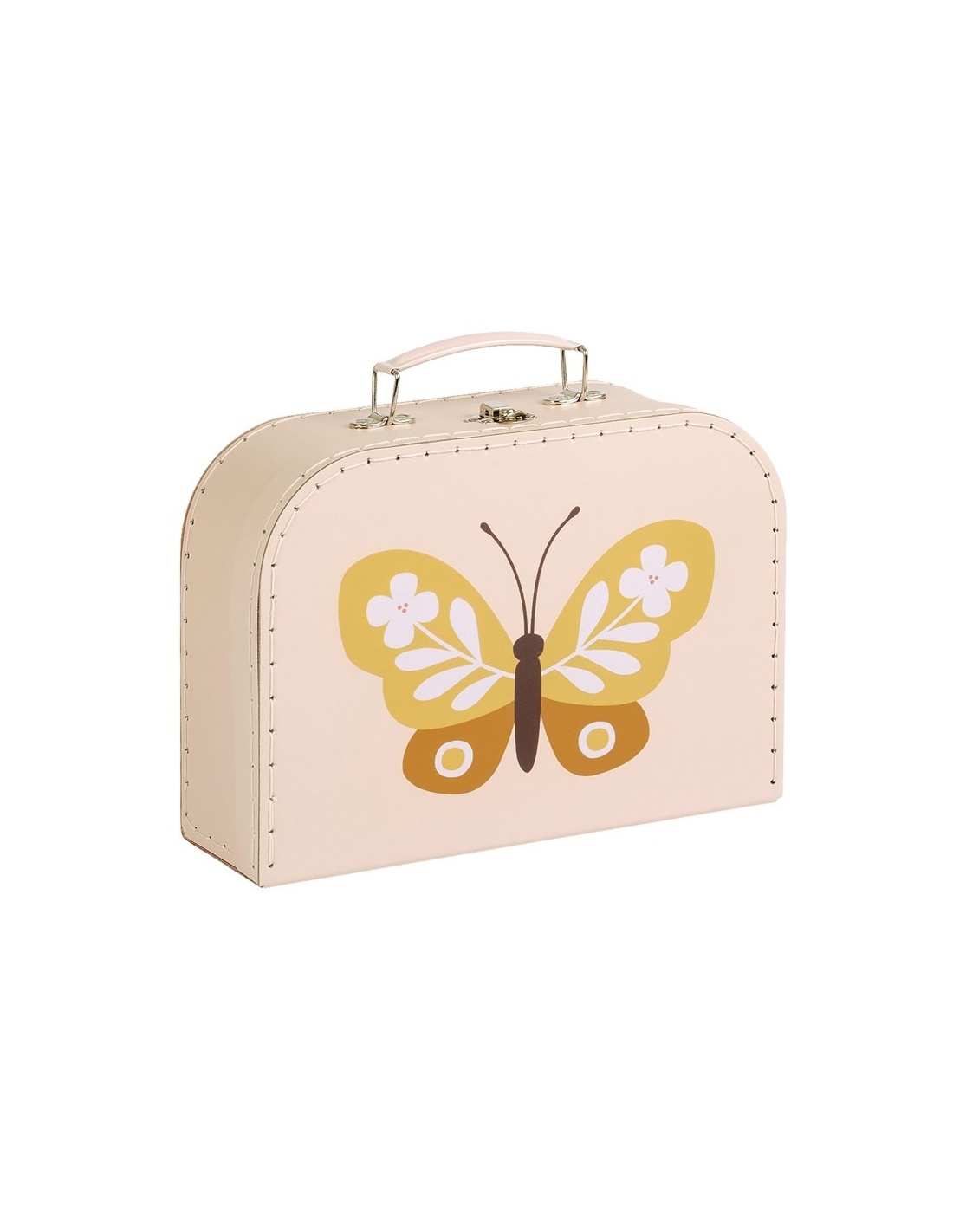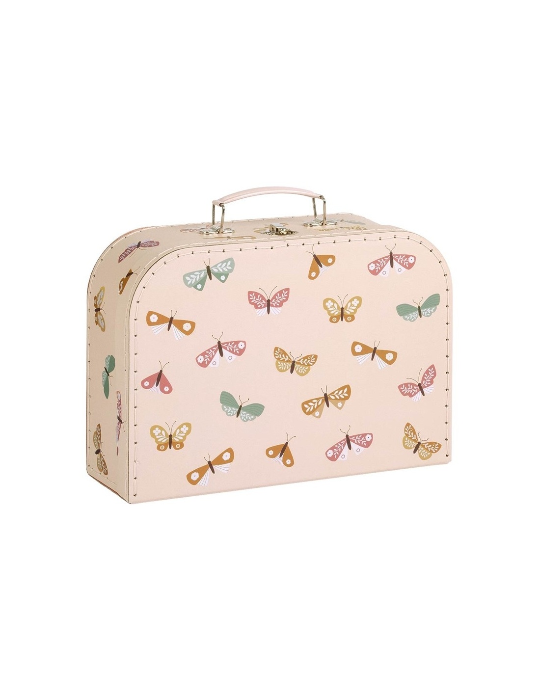 El juego de maletas de cartón está diseñado para guardar artículos como pañales o como decoración para la habitación infantil. El juego consta de dos tamaños diferentes de maletas, hechas de cartón resistente con costuras de poliéster. Ambas maletas cuentan con un asa metálica y una hebilla para cerrarlas.