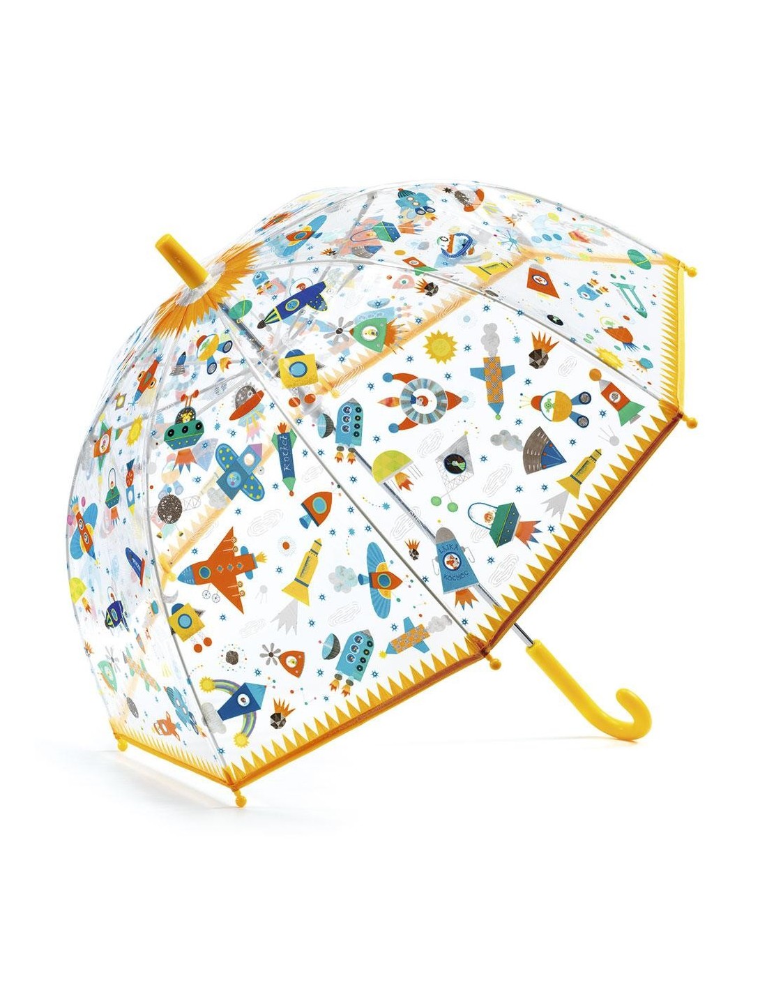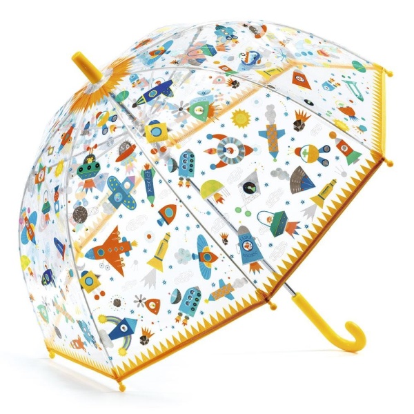 ¡Te damos la bienvenida al universo más alucinante! Alegra tus días de lluvia con este vistoso paraguas transparente, repleto de ilustraciones inspiradas en el espacio.