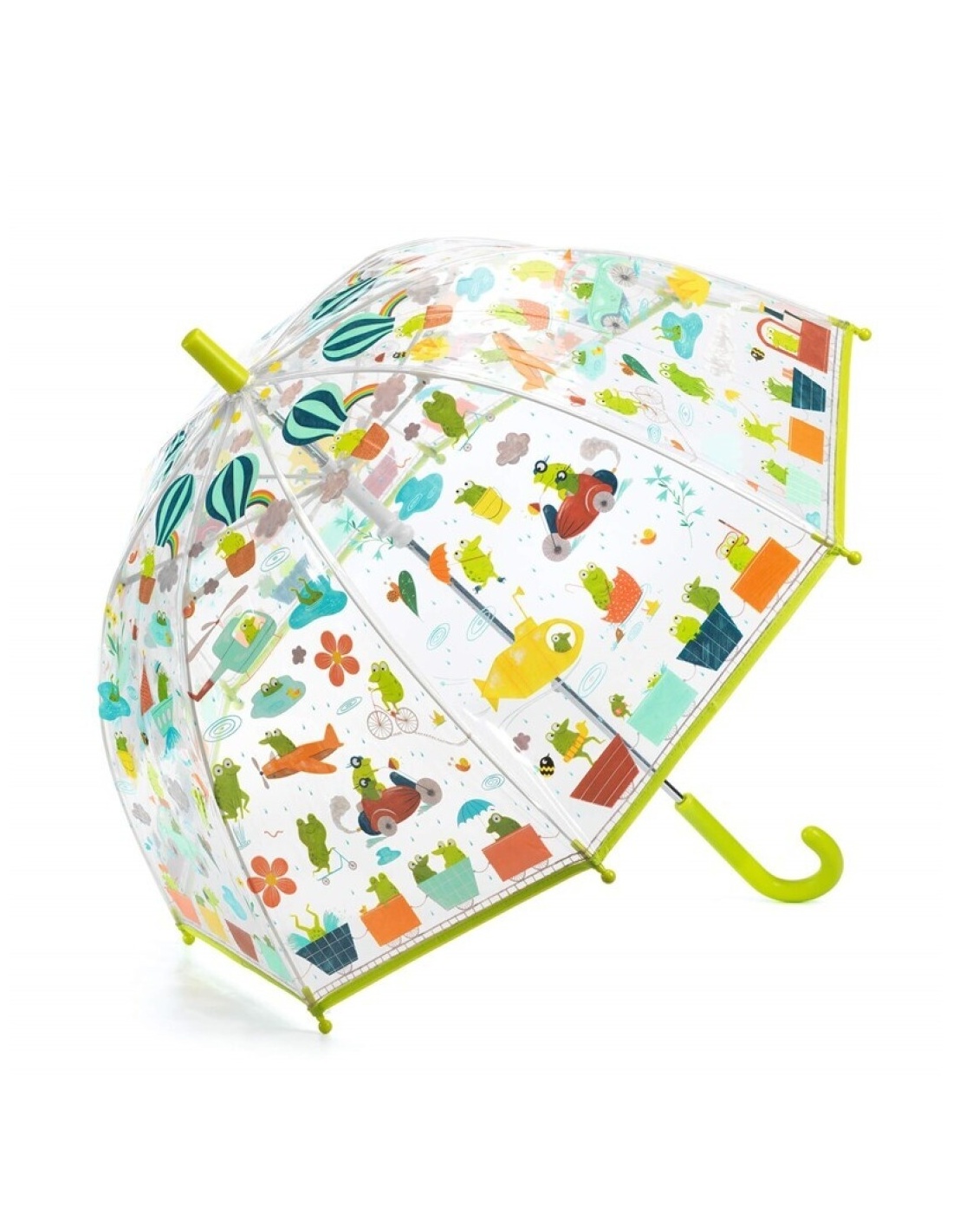 Este encantador paraguas infantil combina diseño, seguridad y resistencia. Fabricado en plástico semitransparente con un delicado acabado textil, cuenta con un marco y varillas de fibra de vidrio que lo hacen ligero y duradero. Su mango de plástico mate ofrece un agarre cómodo y su apertura manual con sistema de protección garantiza que los pequeños puedan usarlo sin riesgo de pillarse los dedos.