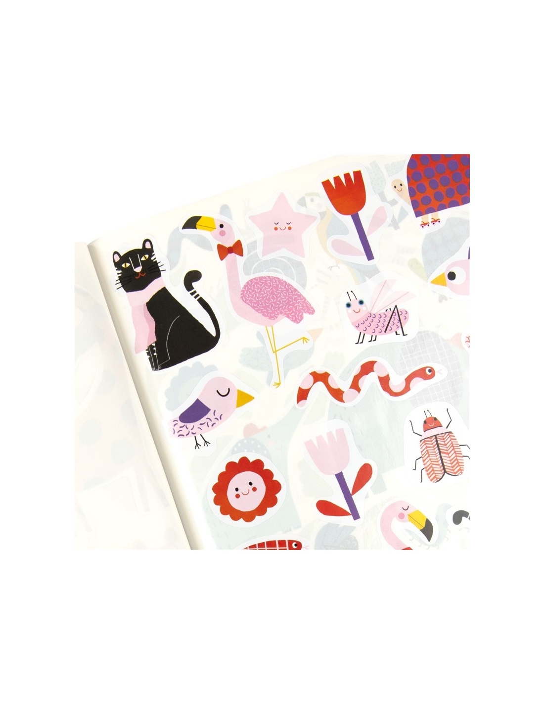 Para los más pequeños, este cuaderno ofrece 300 pegatinas reposicionables organizadas por colores, fáciles de despegar y usar. Una forma divertida de estimular la creatividad, el juego imaginativo y la coordinación, mientras los niños decoran sus dibujos, cuadernos o cualquier espacio con total libertad y diversión.