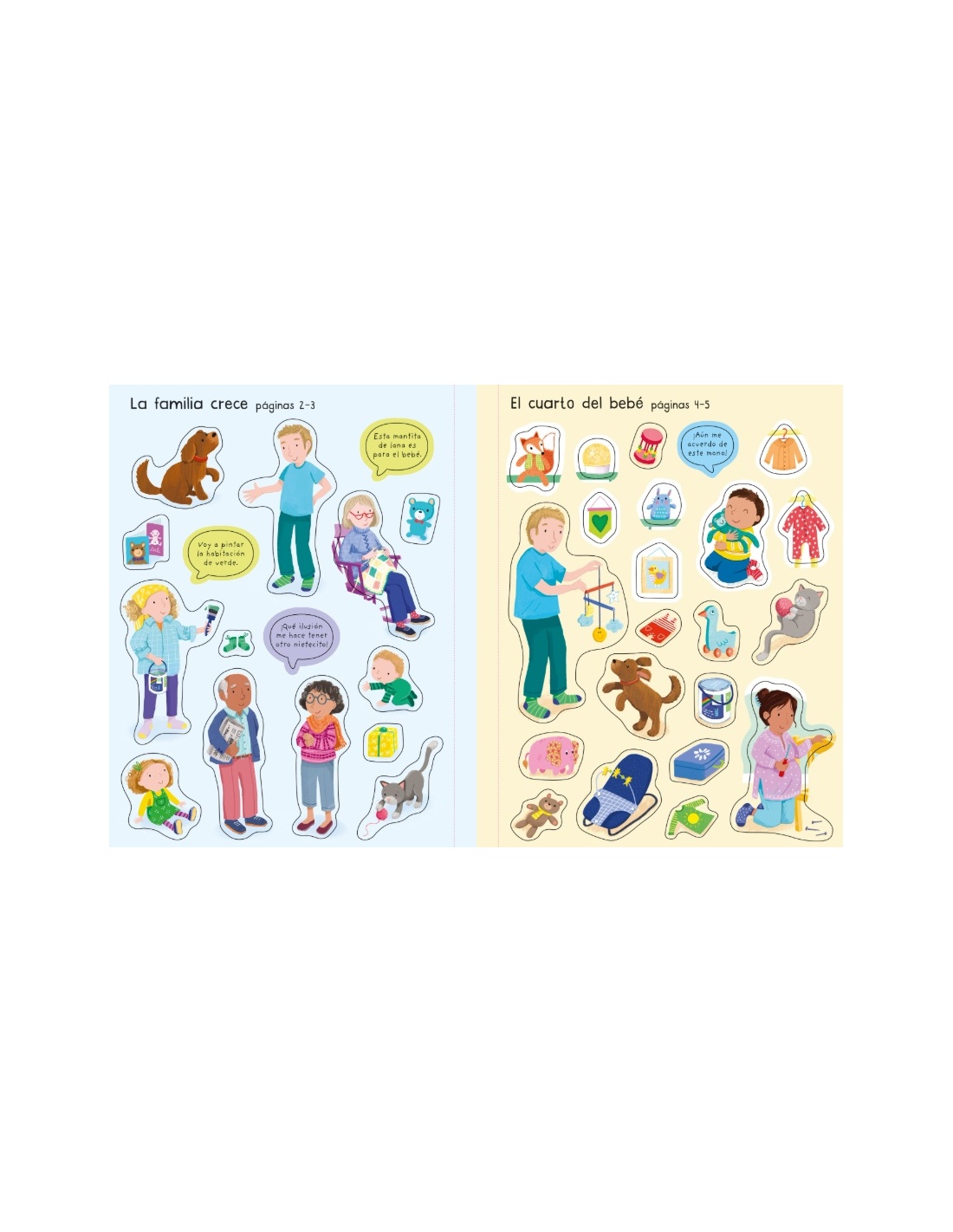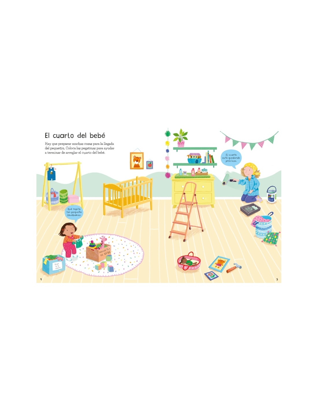 Un libro de pegatinas sobre la experiencia de traer un nuevo bebé a la familia en todas sus etapas. Más de 180 pegatinas para que los niños puedan ayudar a decorar la habitación del bebé, reunir todas las cosas que necesitará, visitar el hospital y ayudar a la hora de acostarlo. Un magnífico libro para preparar a los niños a recibir a un nuevo hermanito o hermanita.
