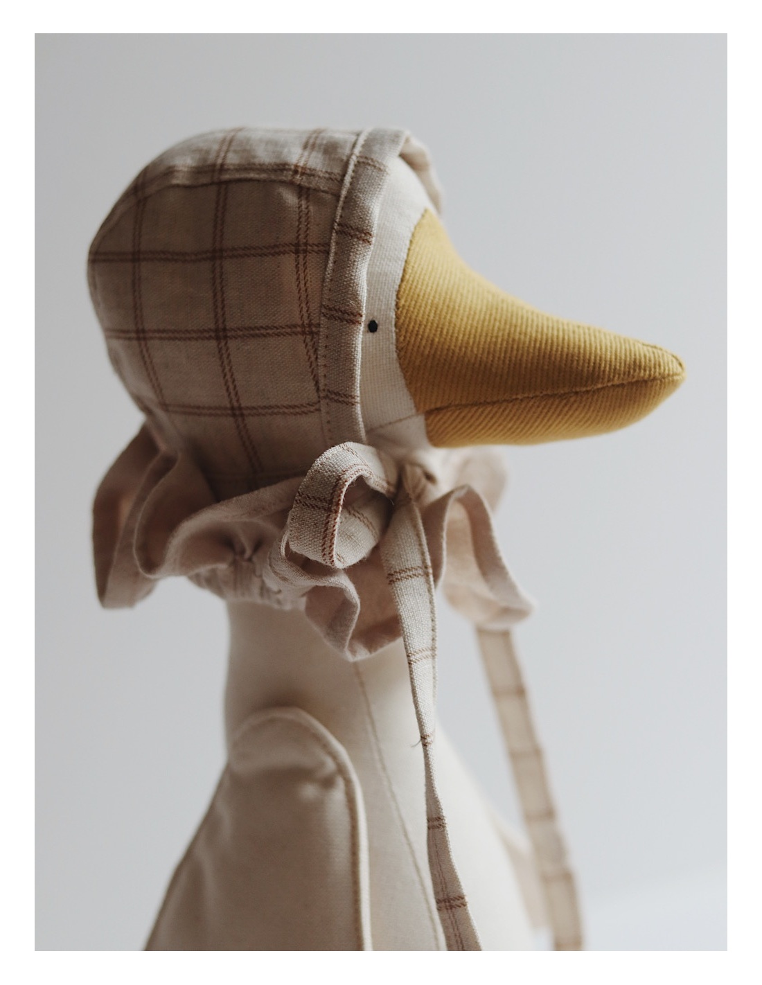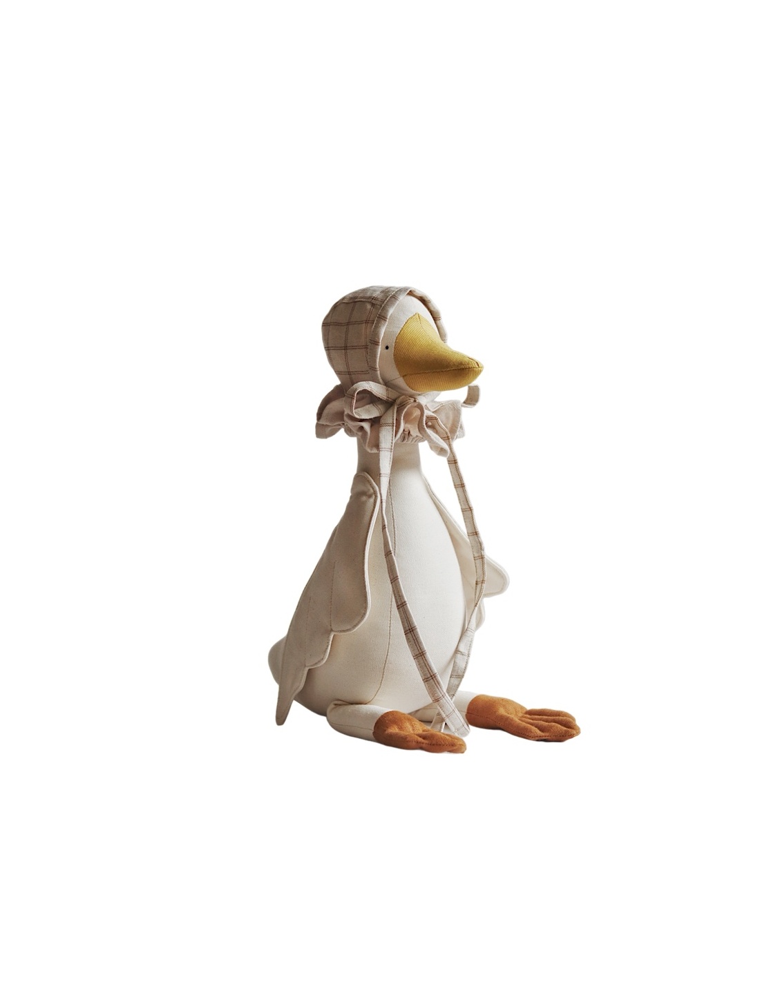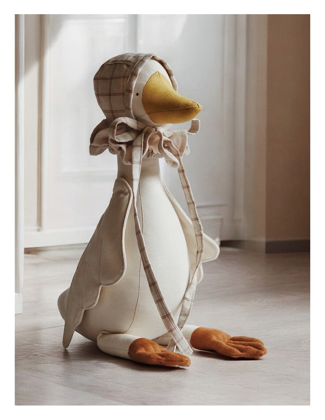Esta encantadora oca está confeccionada con algodón orgánico y rellena con fibra hipoalergénica. Su gorrito divertido y el delicado lazo le aportan un toque especial, lleno de personalidad y ternura. Ideal para decorar habitaciones infantiles, salas de juego o como regalo único. Ya sea en una repisa o como compañera de juegos, esta oca está hecha para regalar sonrisas allá donde vaya.