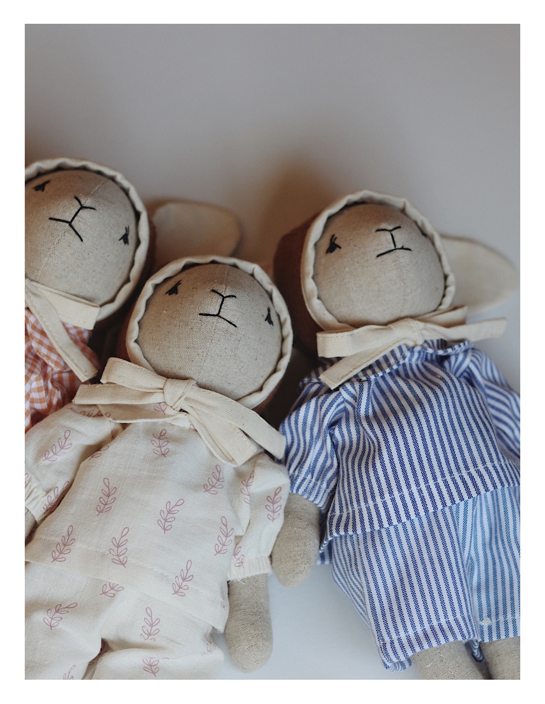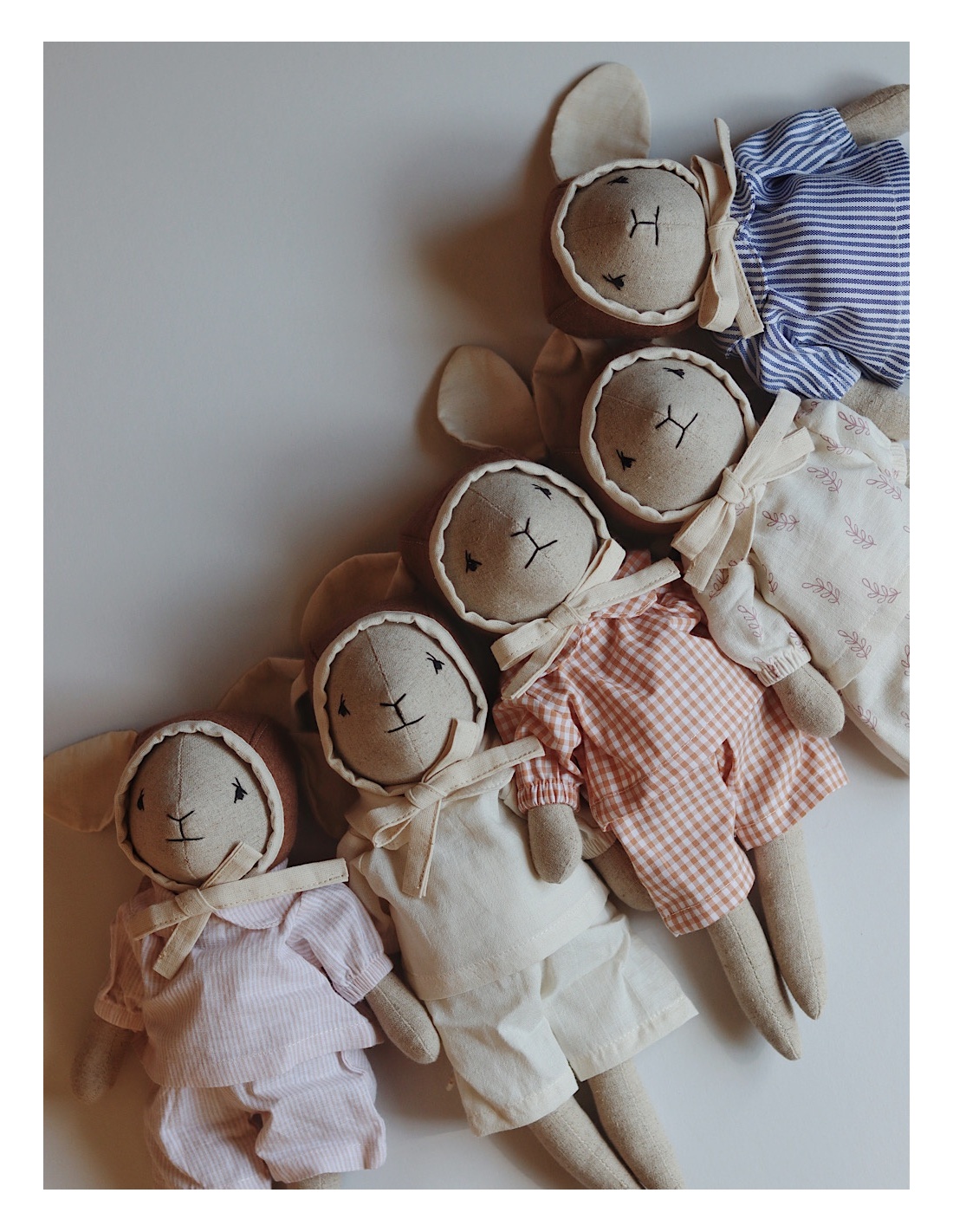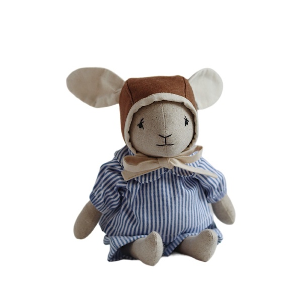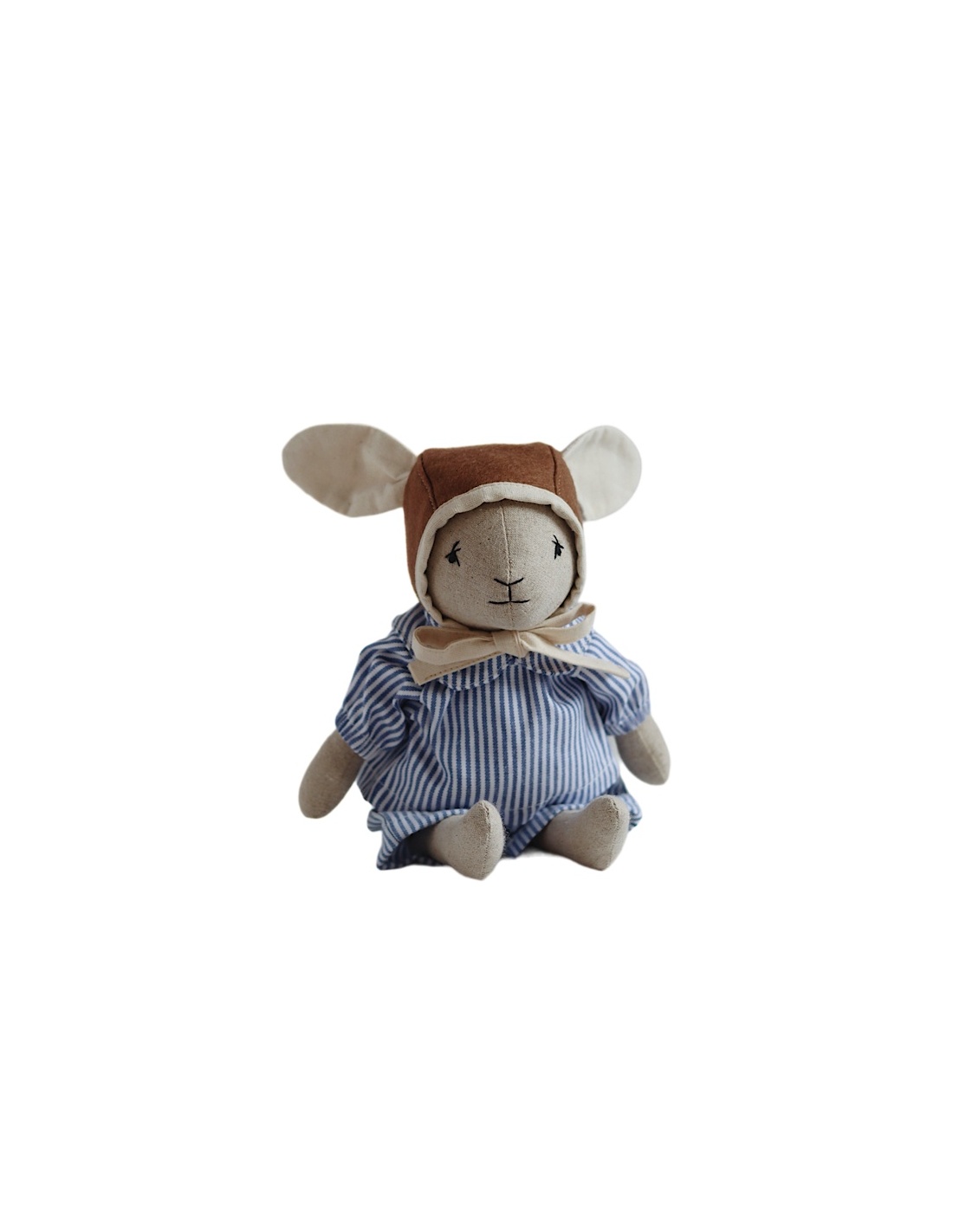 CONEJITO PEQUEÑO COLOR AVENA CON CONJUNTO DE RAYAS AZULES QUBASHI