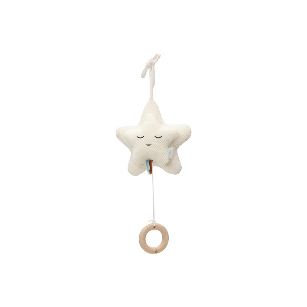 ¡Consigue este precioso móvil musical en forma de estrella y deja que tu peque disfrute de los hermosos sonidos de la canción de cuna de Schubert! Estas estrellas, una grande y otra más pequeña, cuentan con coloridos cordones, ojitos bordados y una cuerda para activar la música. ¡Queda adorable en la cuna o parque!