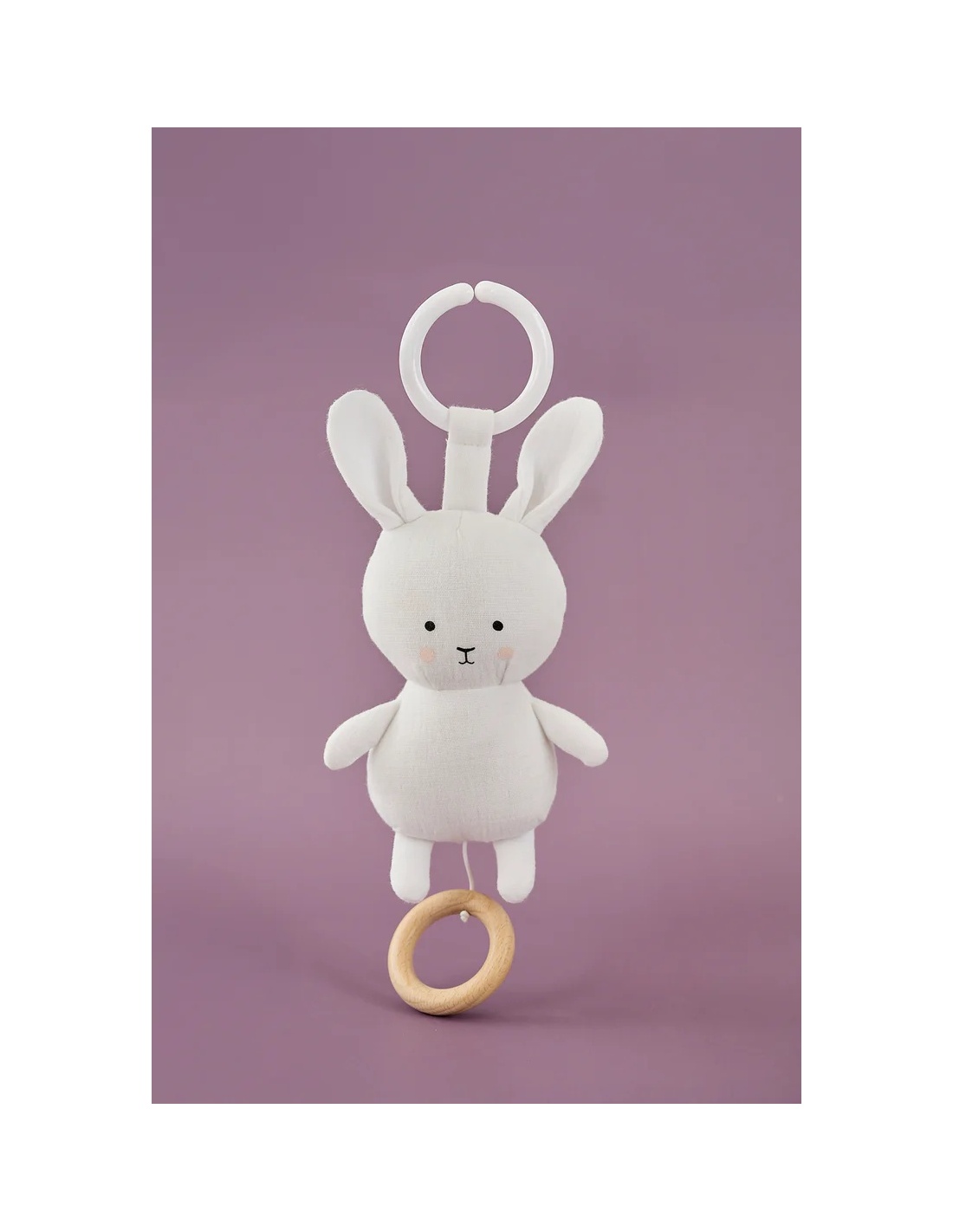 Conejito musical para colgar en el cochecito o en un gimnasio de bebé, que permita que duerma con una melodía relajante.