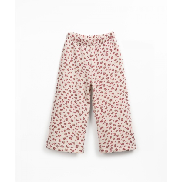 Estos pantalones están hechos de punto con una mezcla de algodón regenerativo y algodón reciclado, en color Blanco Medio. Son un modelo ancho con cintura elástica y estampado de manchas animales.