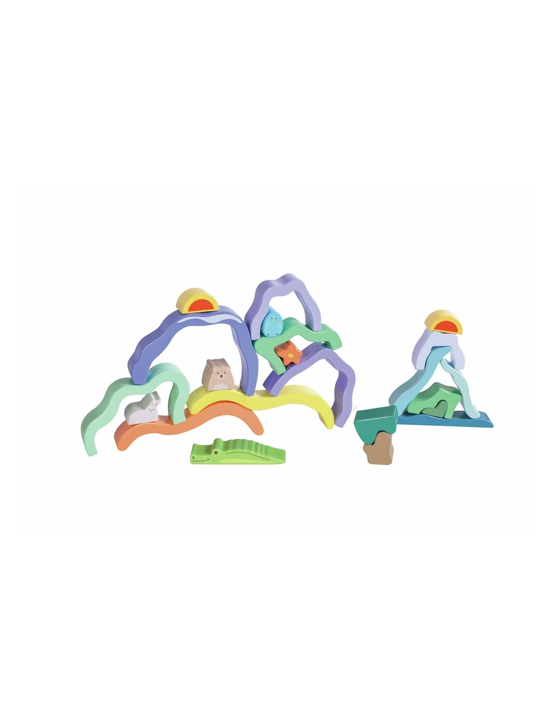 Un conjunto colorido de bloques irregulares con una temática paisajística y animal. Estos bloques se encajan y apilan para desatar la imaginación y creatividad de tu hijo.