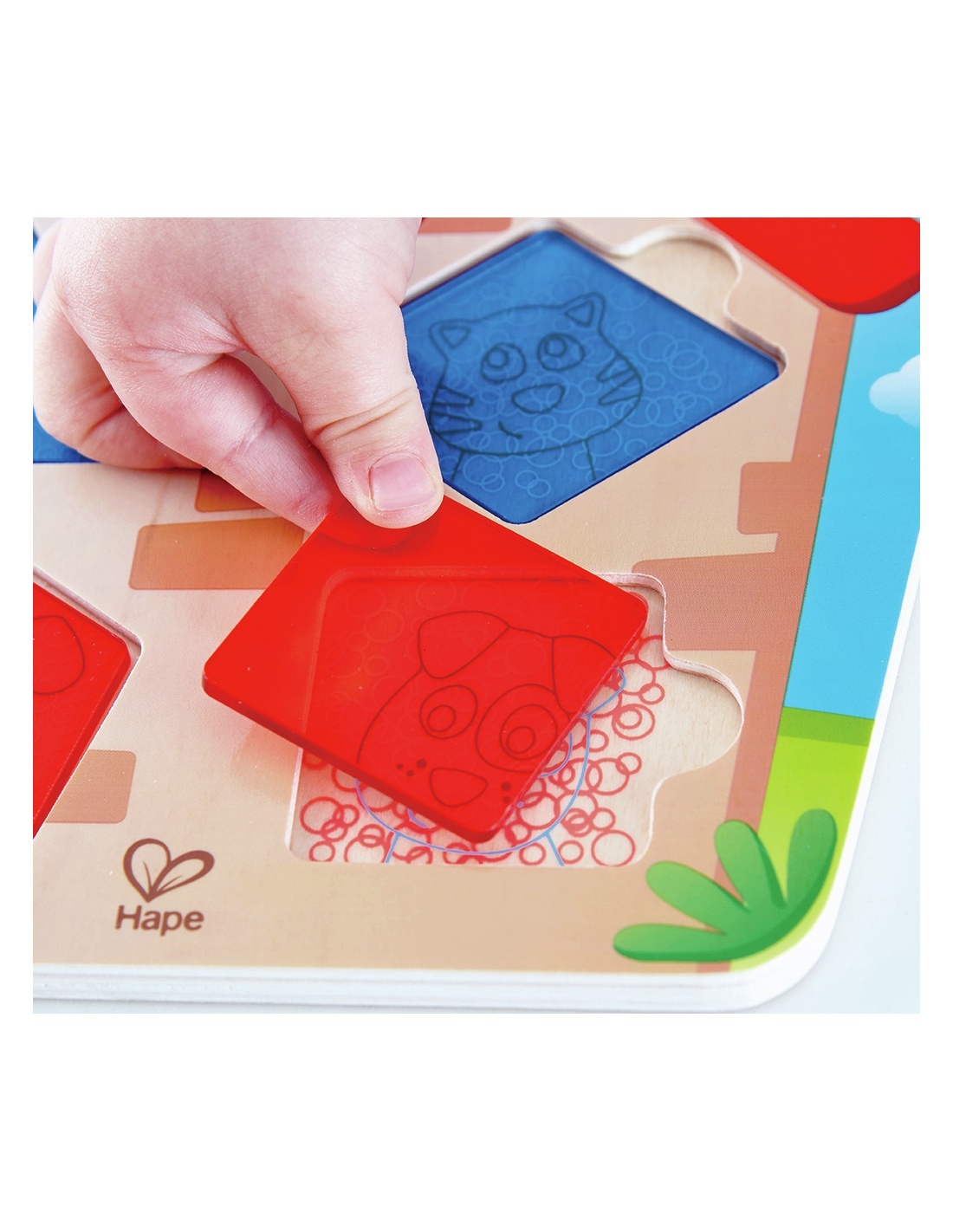 ¿Quién está en casa? Encaja las piezas de colores brillantes en las ranuras correctas para averiguarlo.