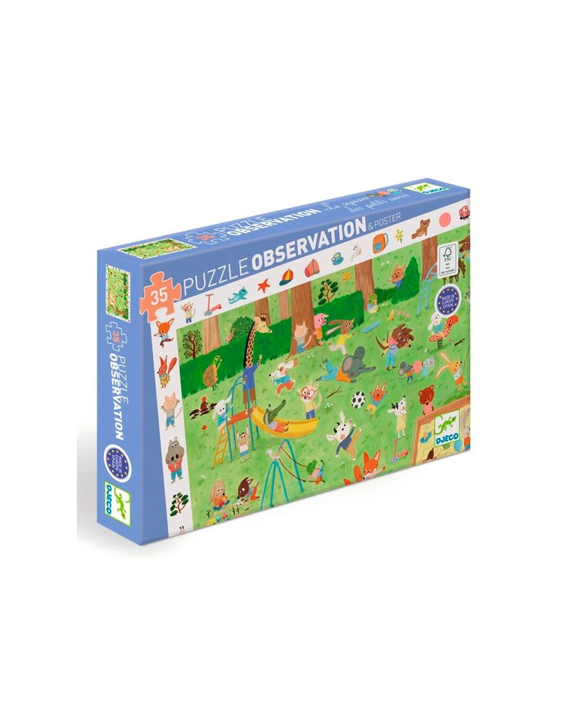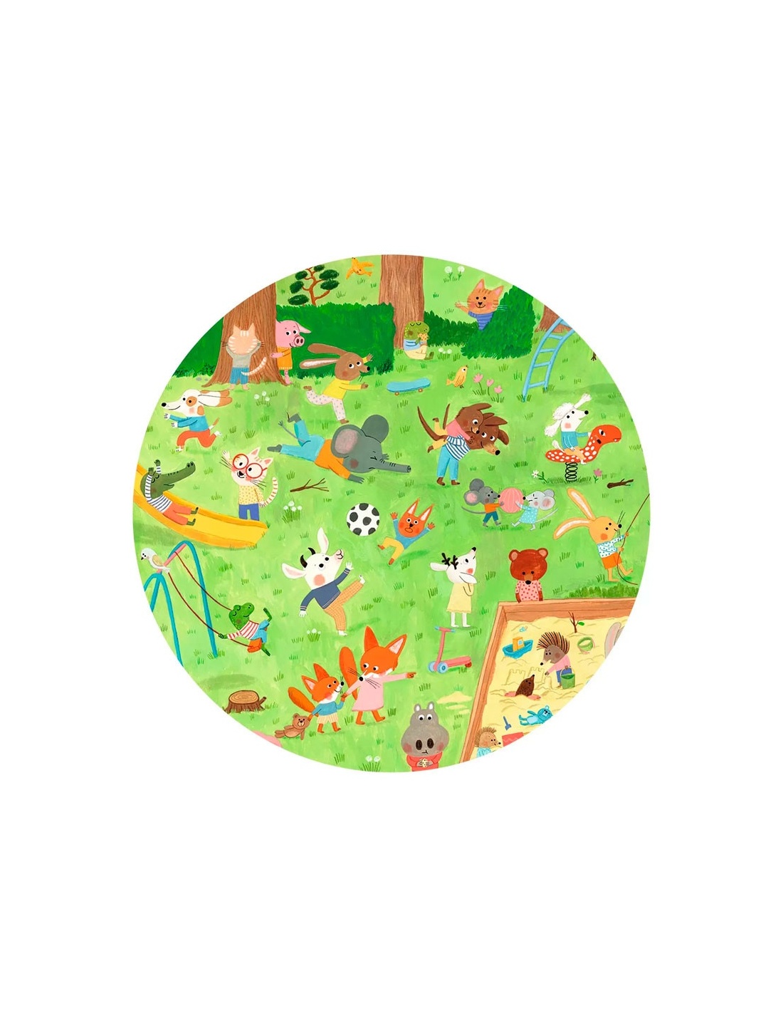 Este encantador rompecabezas de observación de 35 piezas invita a los peques a descubrir a simpáticos personajes disfrutando de una animada tarde en la plaza. Una vez armado, comienza la diversión: buscar en la imagen central todos los objetos y personajes que aparecen alrededor del puzle. Es un juego ideal para compartir momentos especiales con tu peque, fomentar su atención y enriquecer su vocabulario de forma lúdica y tierna.