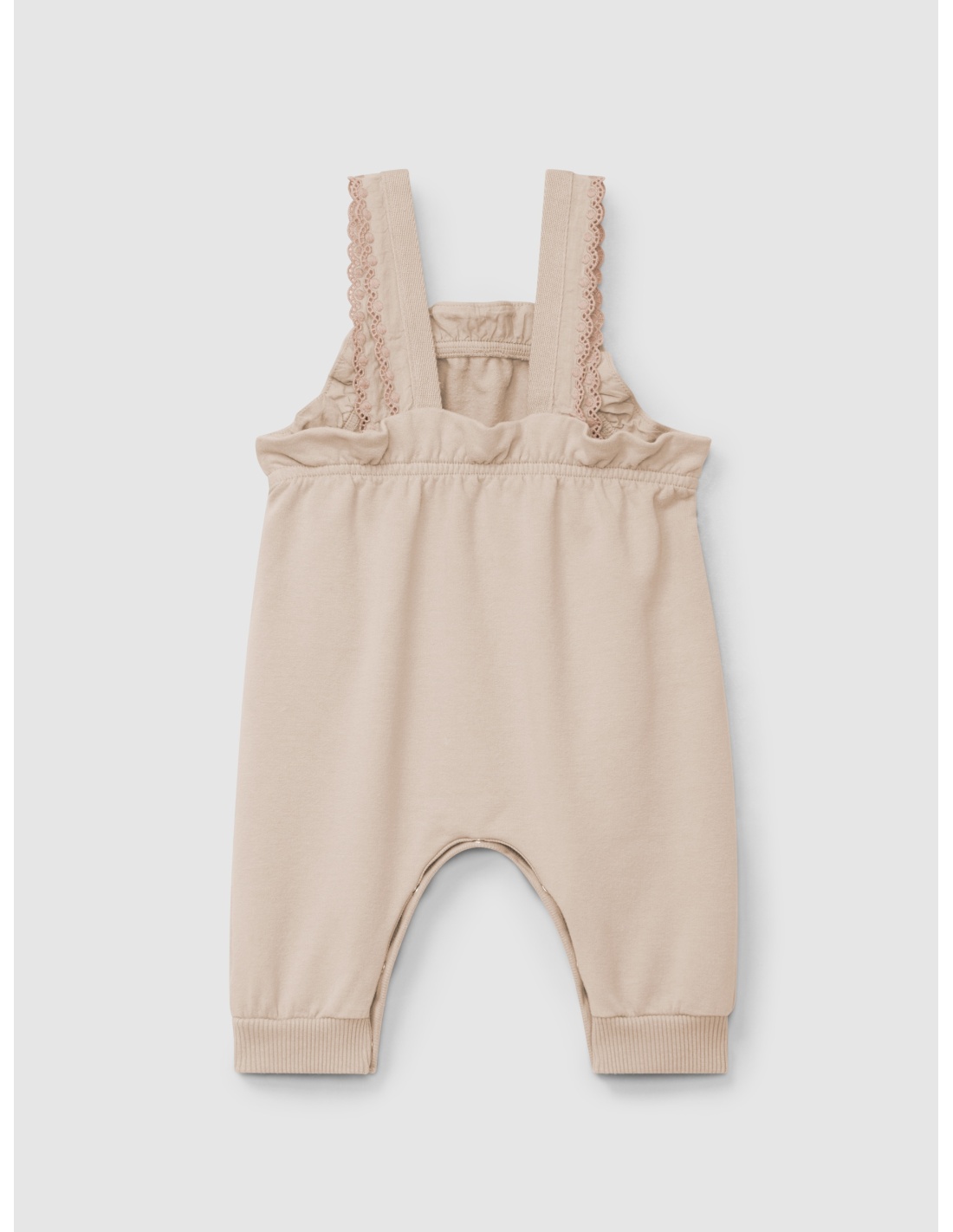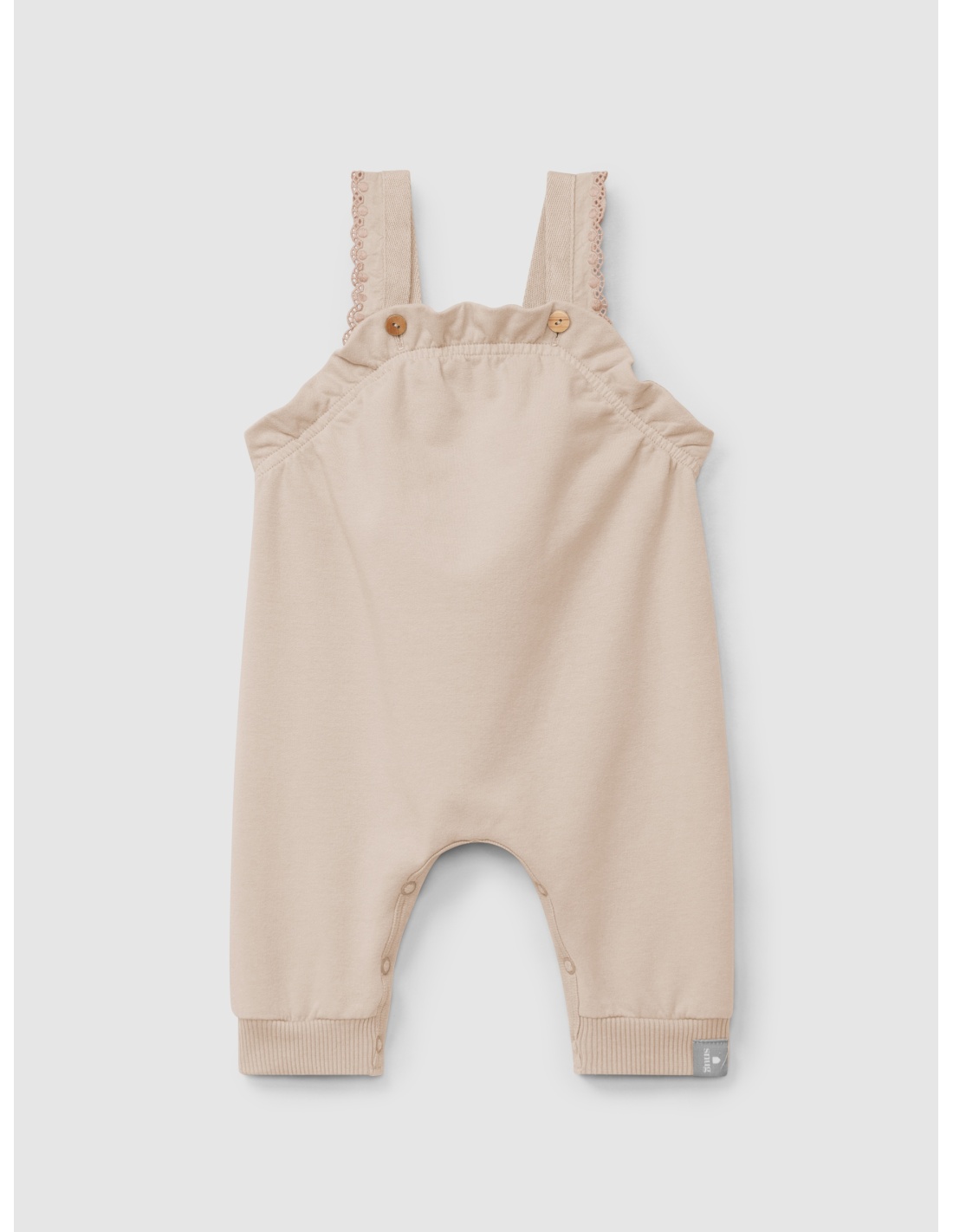 Con un encantador detalle de volante bordado en los tirantes y elástico en el pecho para un ajuste cómodo y delicado. Se cierra con botones de madera en los tirantes y prácticos broches en la entrepierna hasta los 12 meses, facilitando el cambio. Suave, cálido y lleno de encanto natural.
