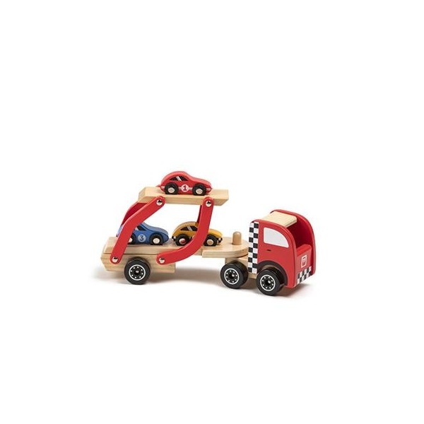 Contiene un camión y 3 coches de madera. Podrán cargar el camión y transportar los coches. La parte de arriba se puede bajar y convertir en una rampa de acceso a la plataforma inferior del remolque, lo que hace que sea totalmente funcional y super cómodo para mover los coches. Este juego ayuda a desarrollar la motricidad fina así como estimular su imaginación y creatividad.