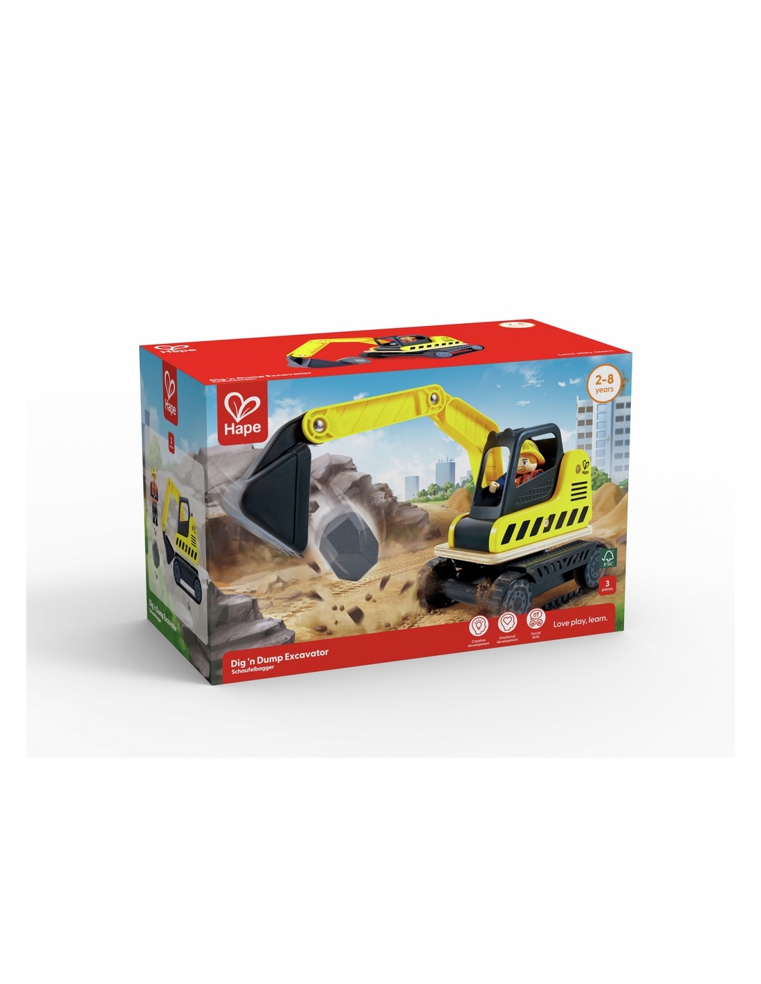 La Excavadora Dig N Dump de Hape es el compañero ideal para que los más pequeños se sumerjan en el emocionante mundo de la construcción mientras desarrollan su motricidad y dan rienda suelta a su creatividad. Con una pala móvil, ruedas de goma realistas y una cabina que gira 360°, ofrece una experiencia de juego auténtica y llena de diversión. Además, incluye un simpático trabajador de construcción y una roca de madera, ¡perfectos para crear historias y aventuras sin fin en cada jornada de juego!