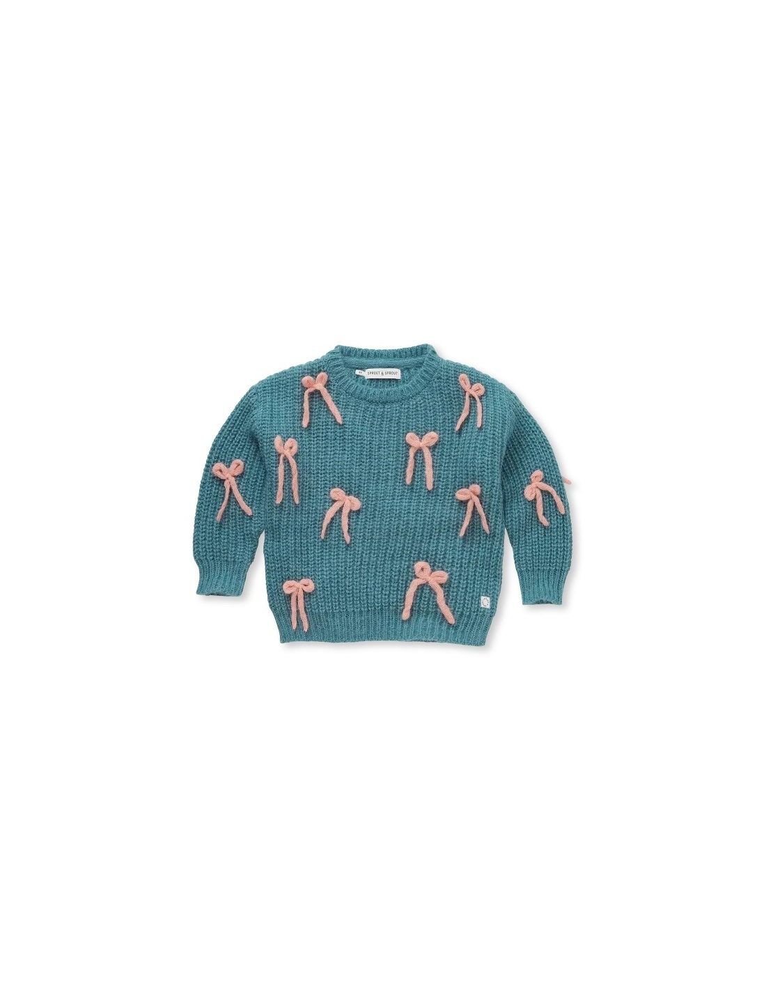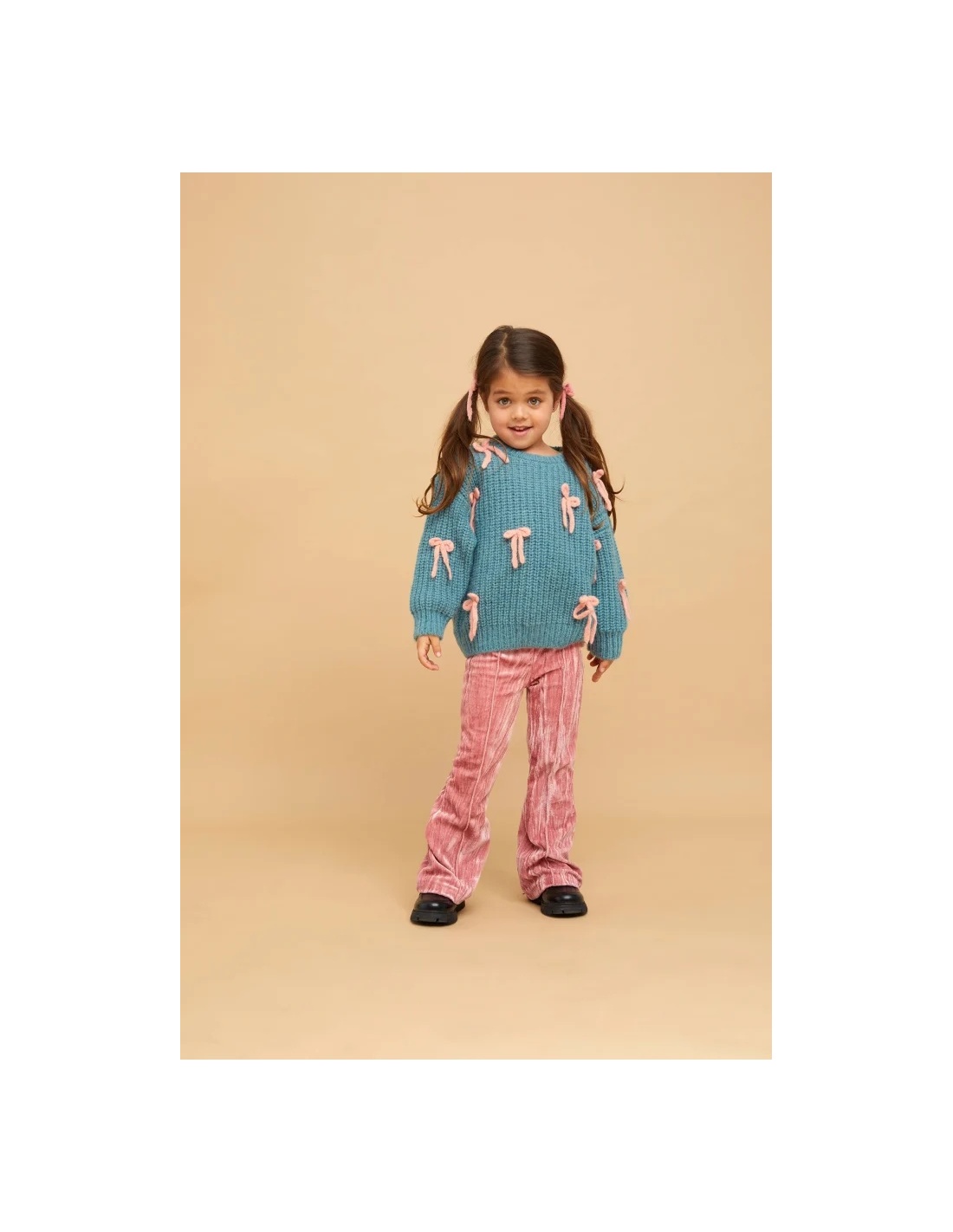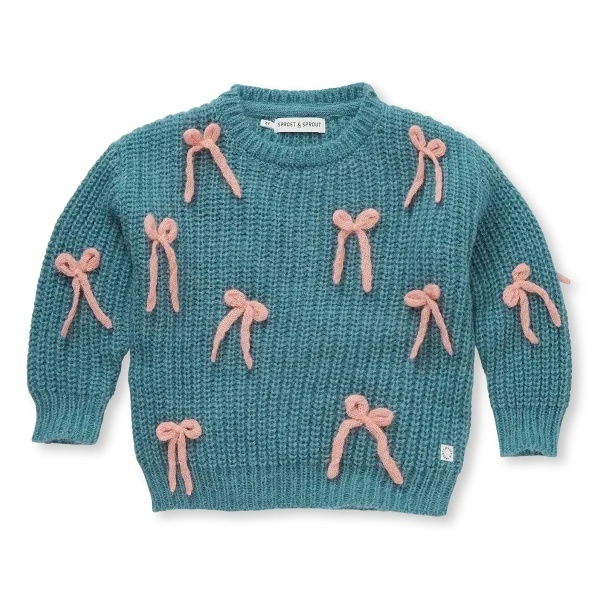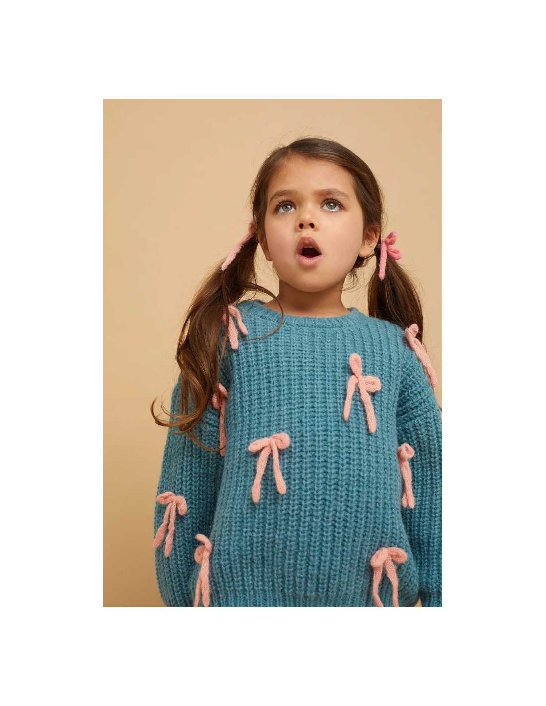 Una prenda única para cada niña: este suéter verde cuenta con auténticos lazos rosas por toda la superficie y está confeccionado en una suave mezcla de nylon, acrílico y lana. Combínalo con jeans acampanados rosas, una falda o leggings para destacar con estilo.
