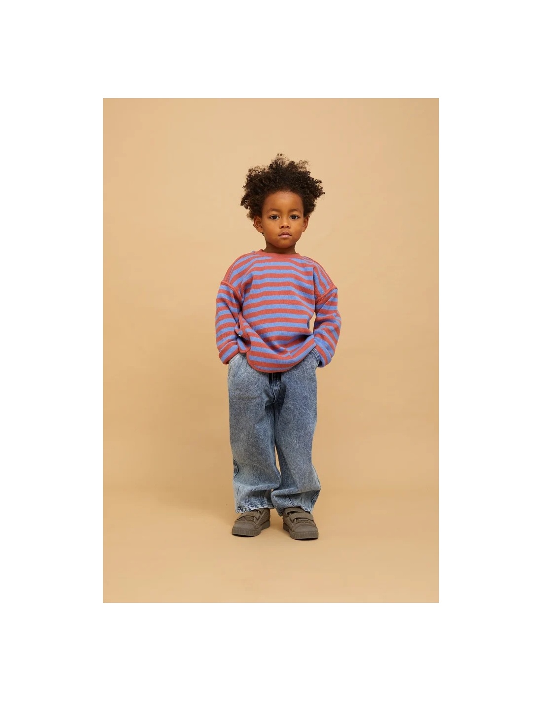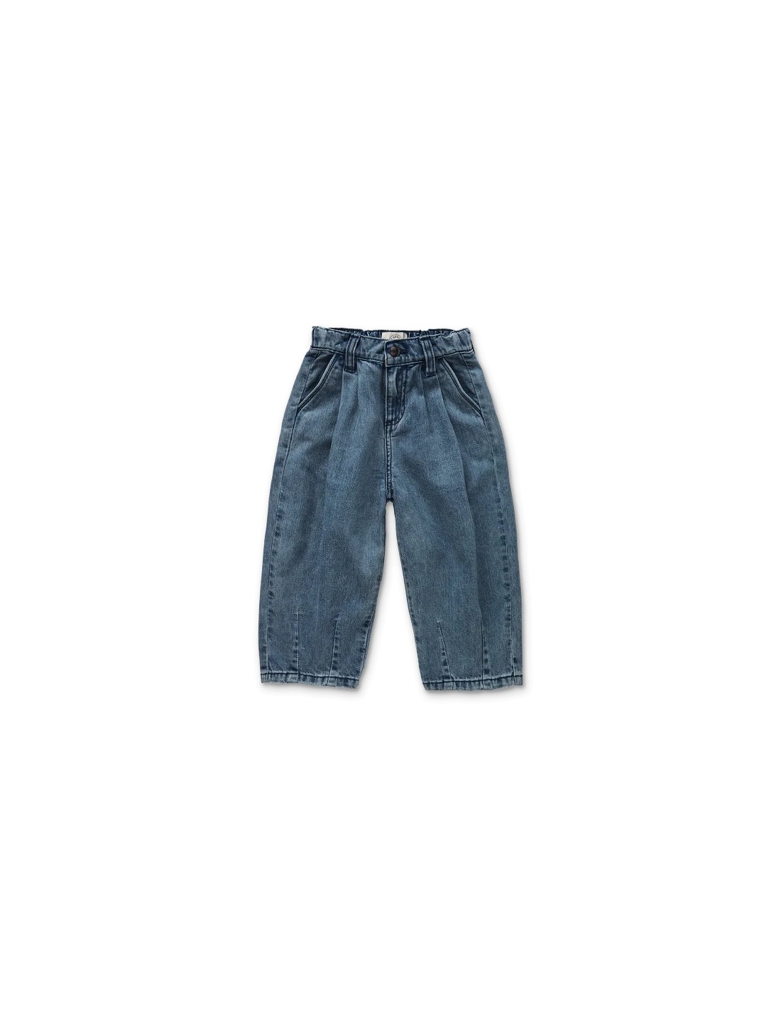 La comodidad ante todo. Estos jeans de corte amplio en denim azul lavado tienen pliegues frontales y una silueta relajada y desenfadada. Diseñados para ofrecer libertad de movimiento y un estilo casual. Cuentan con una cinta ajustable en el interior de la pretina, que permite un ajuste personalizado a medida que tu hijo crece.