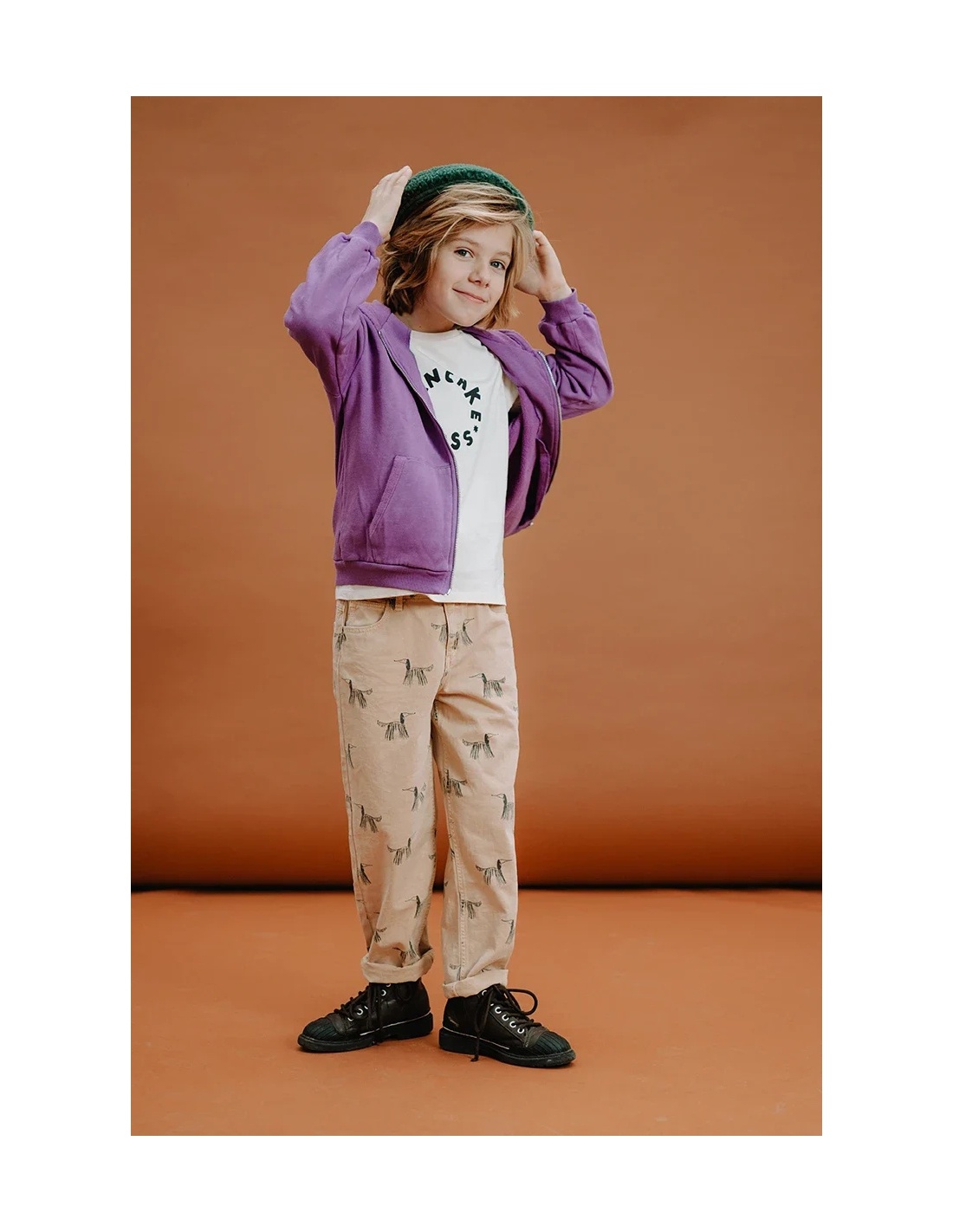 Pantalón de sarga con estampado de perritos está hecho en 100% algodón, lo que lo hace suave y ligero para el día a día de los más peques. Gracias a su cintura elástica, se adapta fácilmente sin apretar, y sus bolsillos están listos para guardar todo tipo de pequeños descubrimientos. El divertido print perruno lo convierte en una prenda ideal para explorar, jugar y pasarlo en grande.