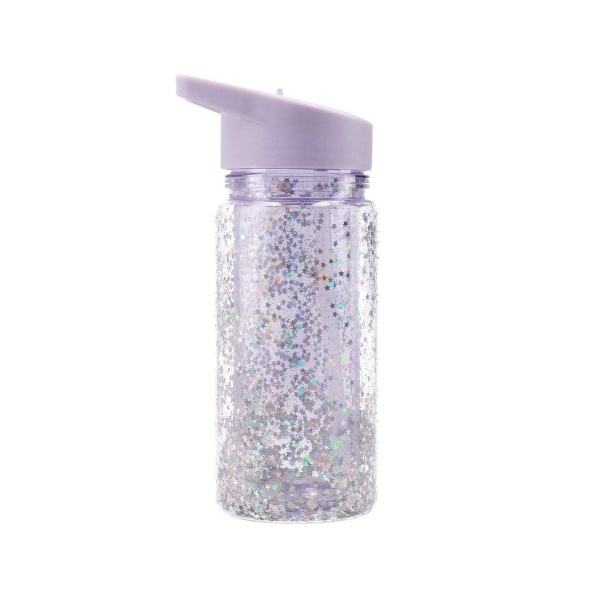 Botella plástico de doble pared con purpurina con forma de estrellitas