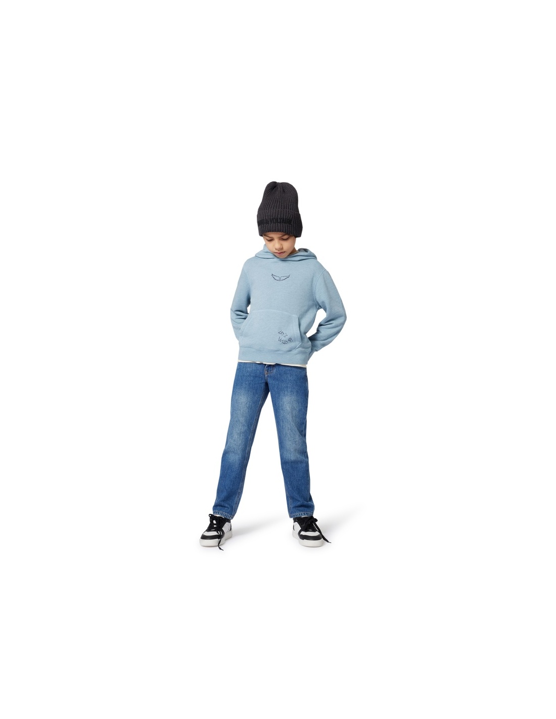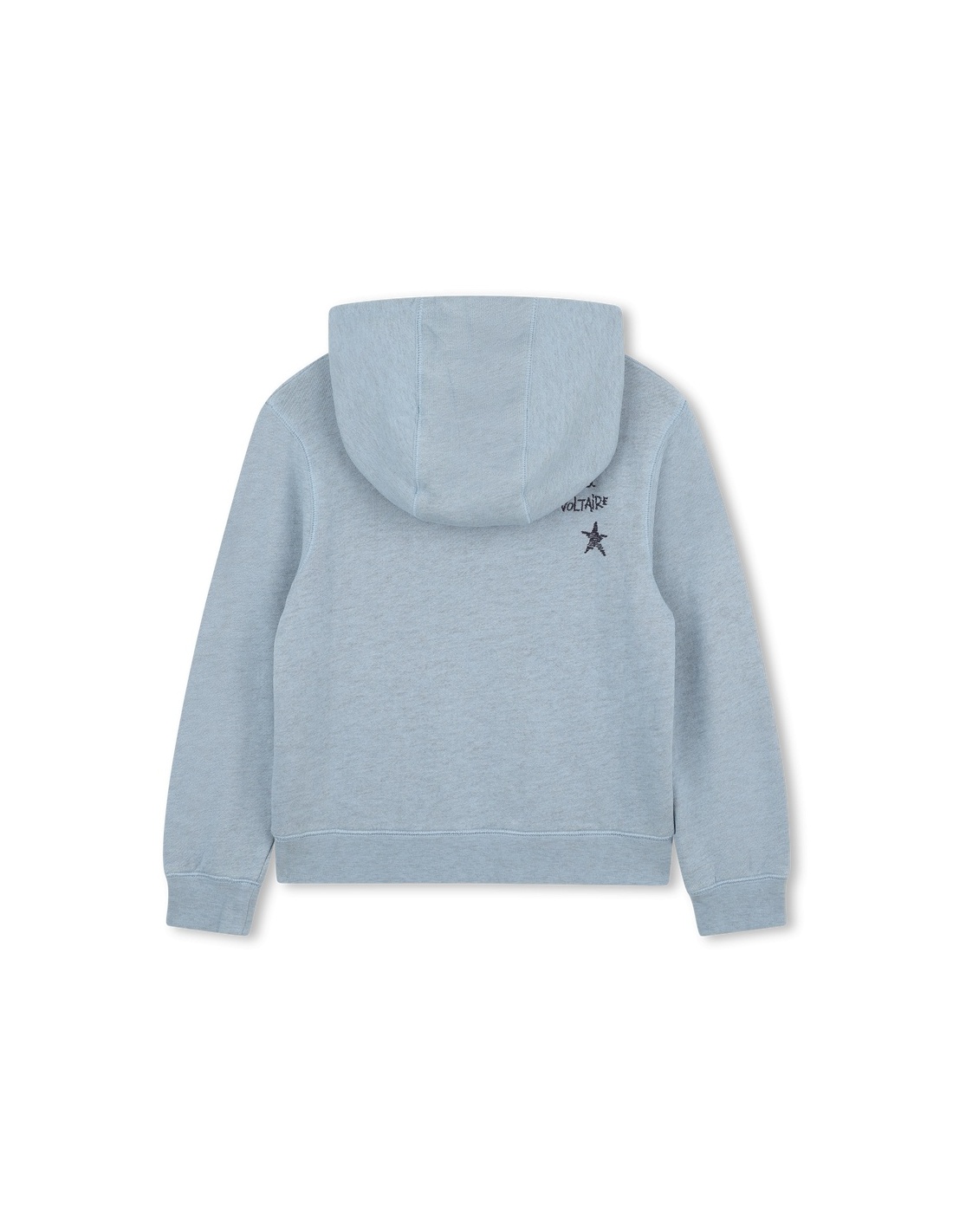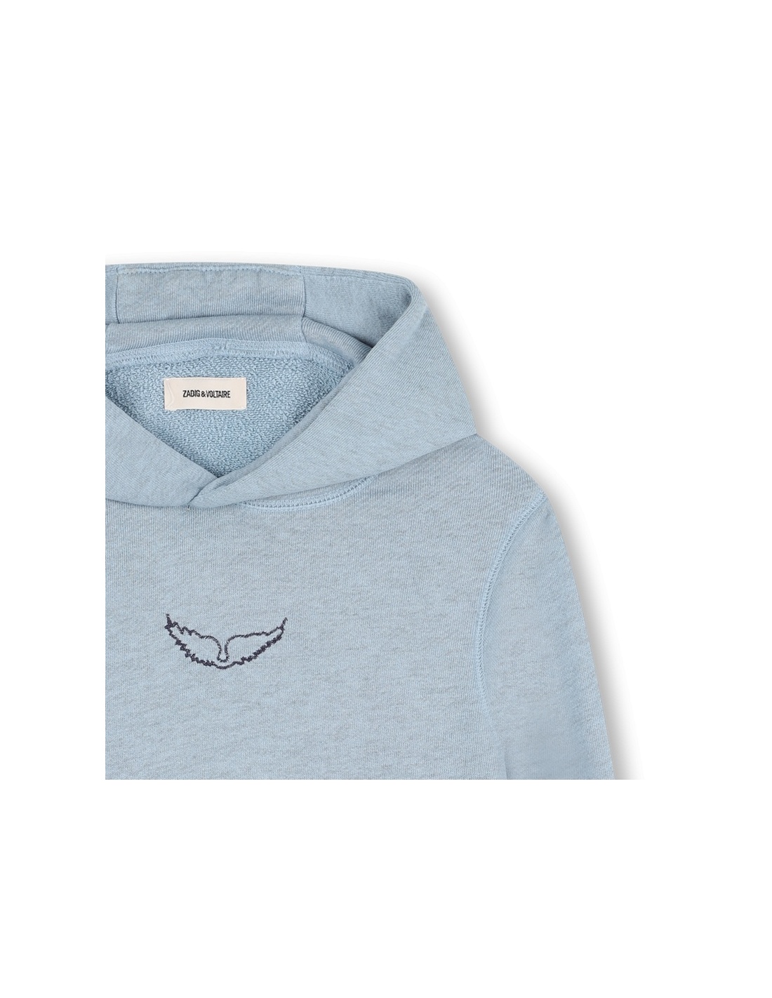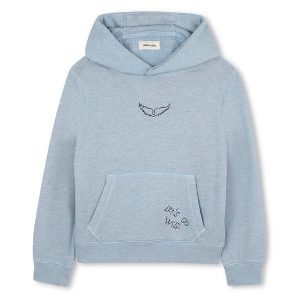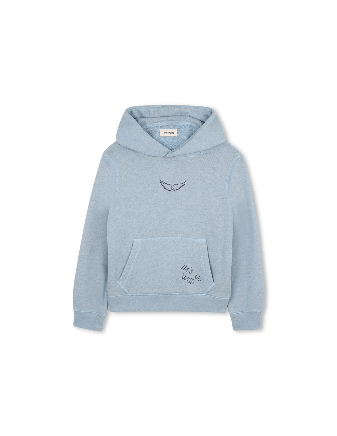ZADIG&VOLTAIRE ha creado una sudadera con capucha con un aspecto casual y asertivo. Confeccionado en felpa sobreteñida para un efecto texturizado único, cuenta con un práctico bolsillo canguro y un icónico bordado de alas en el pecho. En la parte trasera, el logo bordado firma la silueta con carácter. Un básico fresco y rebelde para los niños de freestyle.
