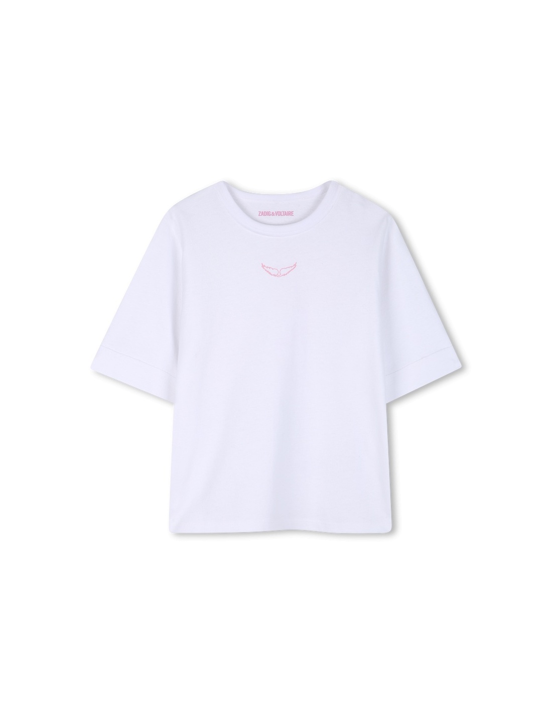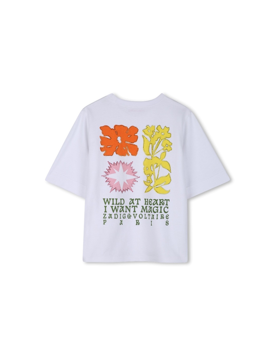 Haz que cada día sea una oportunidad para destacar con esta camiseta de manga corta de ZADIG&VOLTAIRE, pensada para niños con mucha personalidad. Su diseño combina un aire relajado gracias a las mangas remangadas con un estampado frontal lleno de carácter y delicadas pedrería en la parte trasera que aportan un brillo especial. Cómoda, versátil y con ese inconfundible estilo francés, es la prenda ideal para acompañar a los pequeños en sus aventuras diarias, permitiéndoles jugar, moverse y expresarse con un look moderno y encantador.