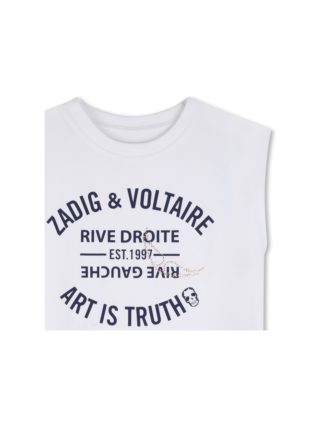 Ilumina el estilo de tu hijo con esta preciosa camiseta de ZADIG&VOLTAIRE, confeccionada en un jersey grueso que aporta estructura y comodidad. Sus aberturas laterales añaden un toque moderno y actual, mientras que el logotipo en la parte delantera y el ala de pedrería aportan un brillo elegante y distintivo. Una pieza imprescindible para pequeños aventureros que buscan chic y autenticidad, ideal para reforzar su personalidad única y hacerlos destacar en cualquier ocasión.
