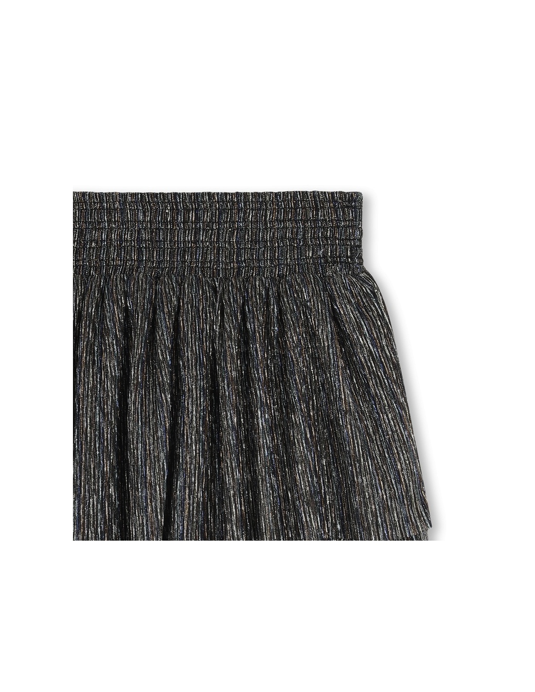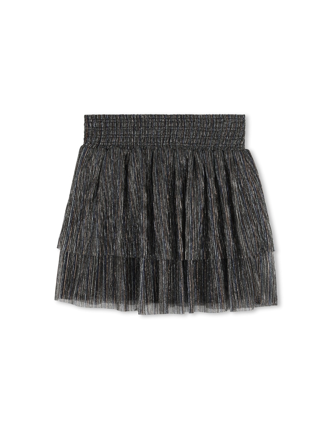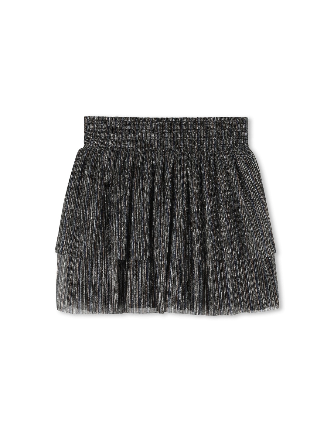 Déjate conquistar por el encanto de esta falda plisada de Zadig & Voltaire, diseñada para iluminar cada paso de tu pequeña estrella. Su cintura elástica ofrece un ajuste cómodo y práctico, mientras que el tejido calado con hilos metálicos multicolores aporta un brillo sutil y lleno de magia. Ideal tanto para ocasiones especiales como para elevar los looks del día a día, es una pieza con personalidad que combina audacia y elegancia en perfecta armonía.