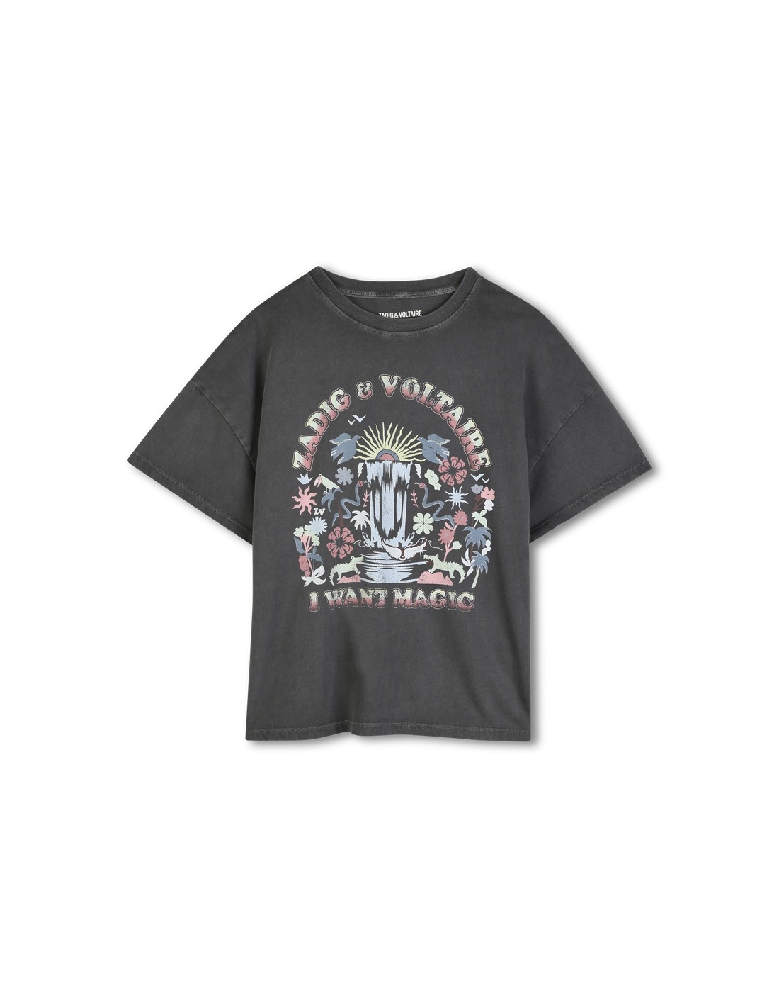 Déjate conquistar por esta camiseta de cuello redondo de Zadig & Voltaire, una prenda imprescindible en el armario de tu hijo que combina comodidad y estilo gracias a su corte extra ancho; su estampado multicolor brillante capta todas las miradas y su tinte le aporta un acabado auténtico y único, convirtiéndola en la opción perfecta para pequeños aventureros que quieren destacar con personalidad en cualquier ocasión.