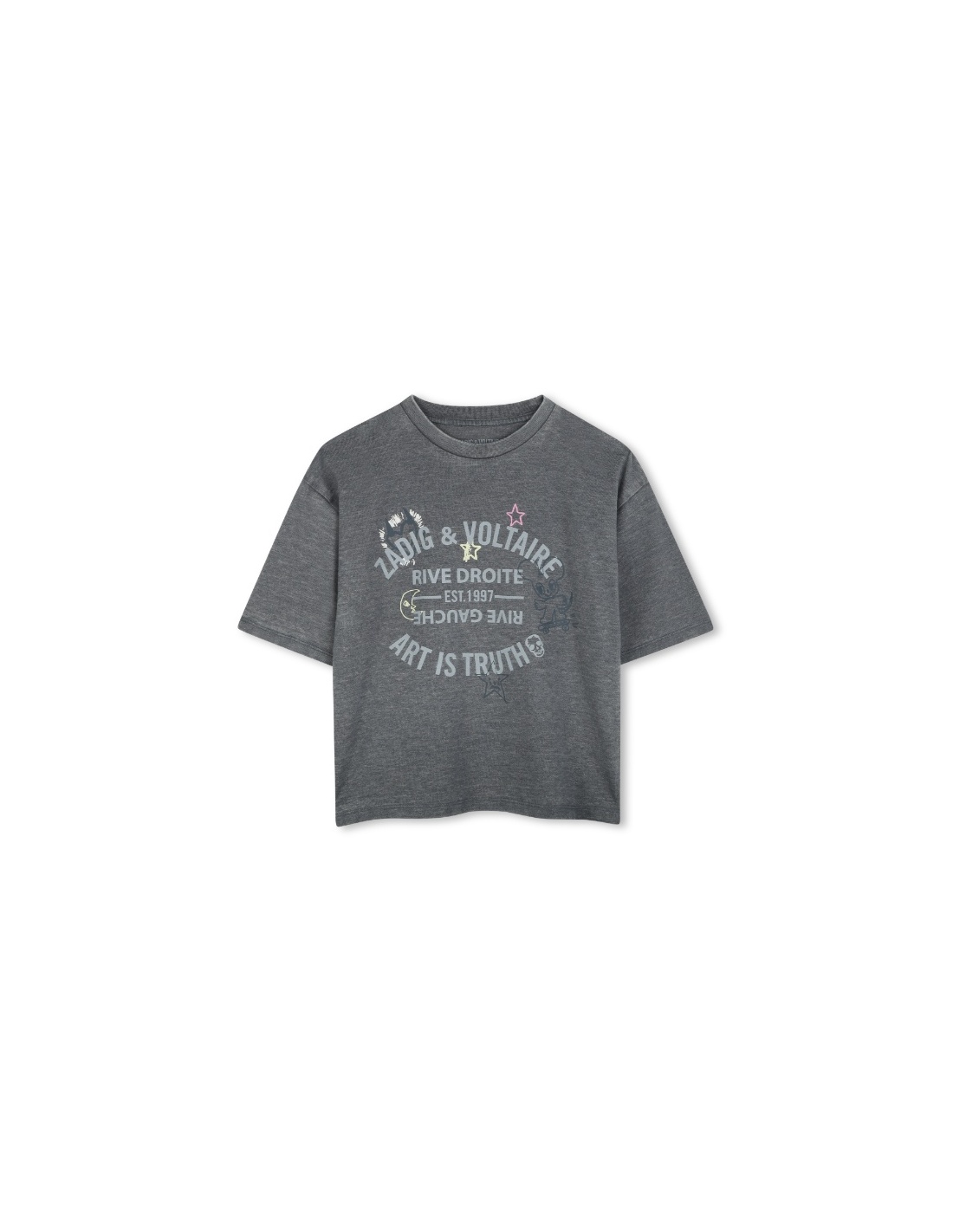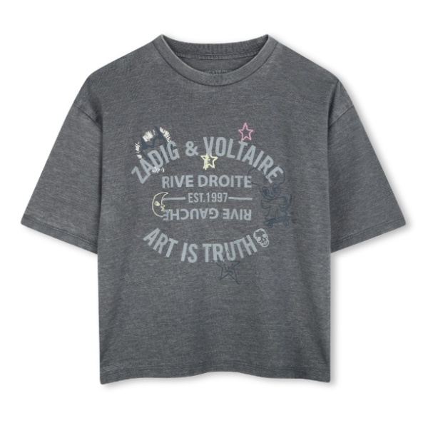 Una camiseta de manga corta presenta un detalle de aplique en su diseño. Con cuello redondo y manga corta, está fabricada en una mezcla de 60% algodón y 40% poliéster, lo que le aporta comodidad y durabilidad. Ideal para un estilo casual y moderno de manga corta Zadig & Voltaire.