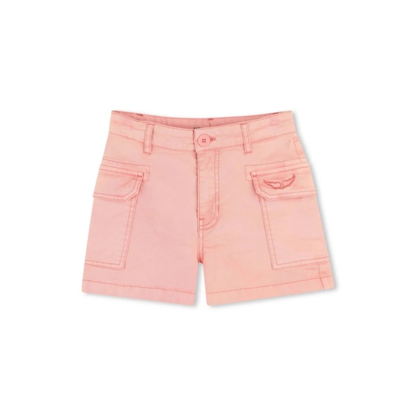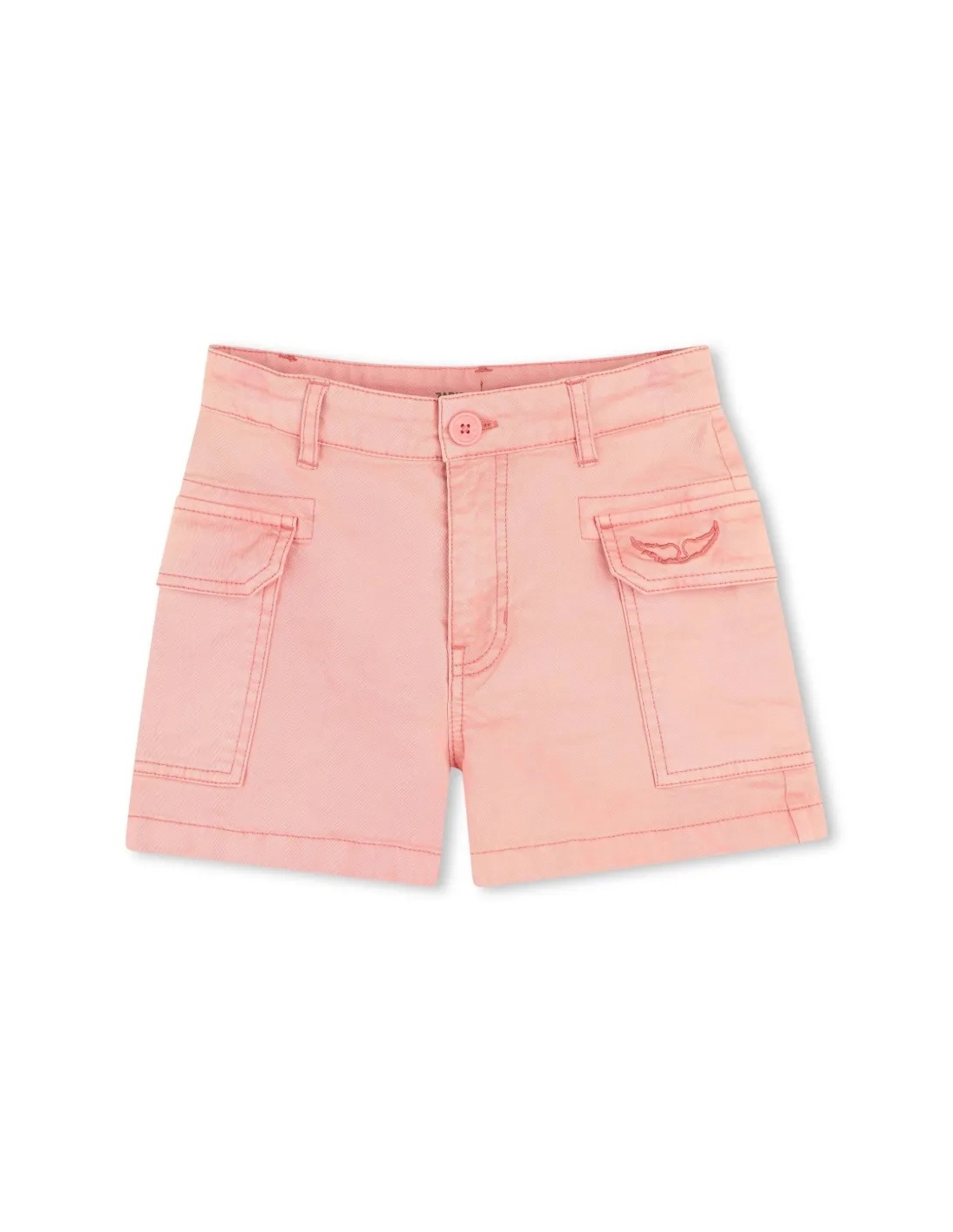 Este pantalón corto desteñido Zadig & Voltaire permite crear un conjunto veraniego moderno y roquero. Lleva bolsillos laterales tipo parche y un bordado en el bolsillo. Este modelo, que hasta la talla 10 años dispone de cintura ajustable, está hecho de sarga.