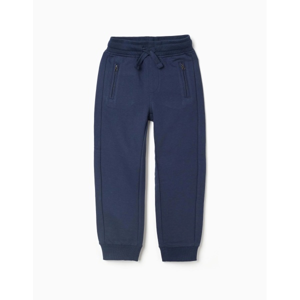 Pantalón jogger azul marino para niño, en mezcla de algodón suave y confortable. Corte ajustado. Bolsillos laterales sellados y bolsillo trasero abierto. Cintura y puños acanalados y flexibles, para máximo confort. We Care: artículo con certificado Oeko-Tex Standard 100, que garantiza la ausencia de sustancias nocivas o irritantes para la piel.