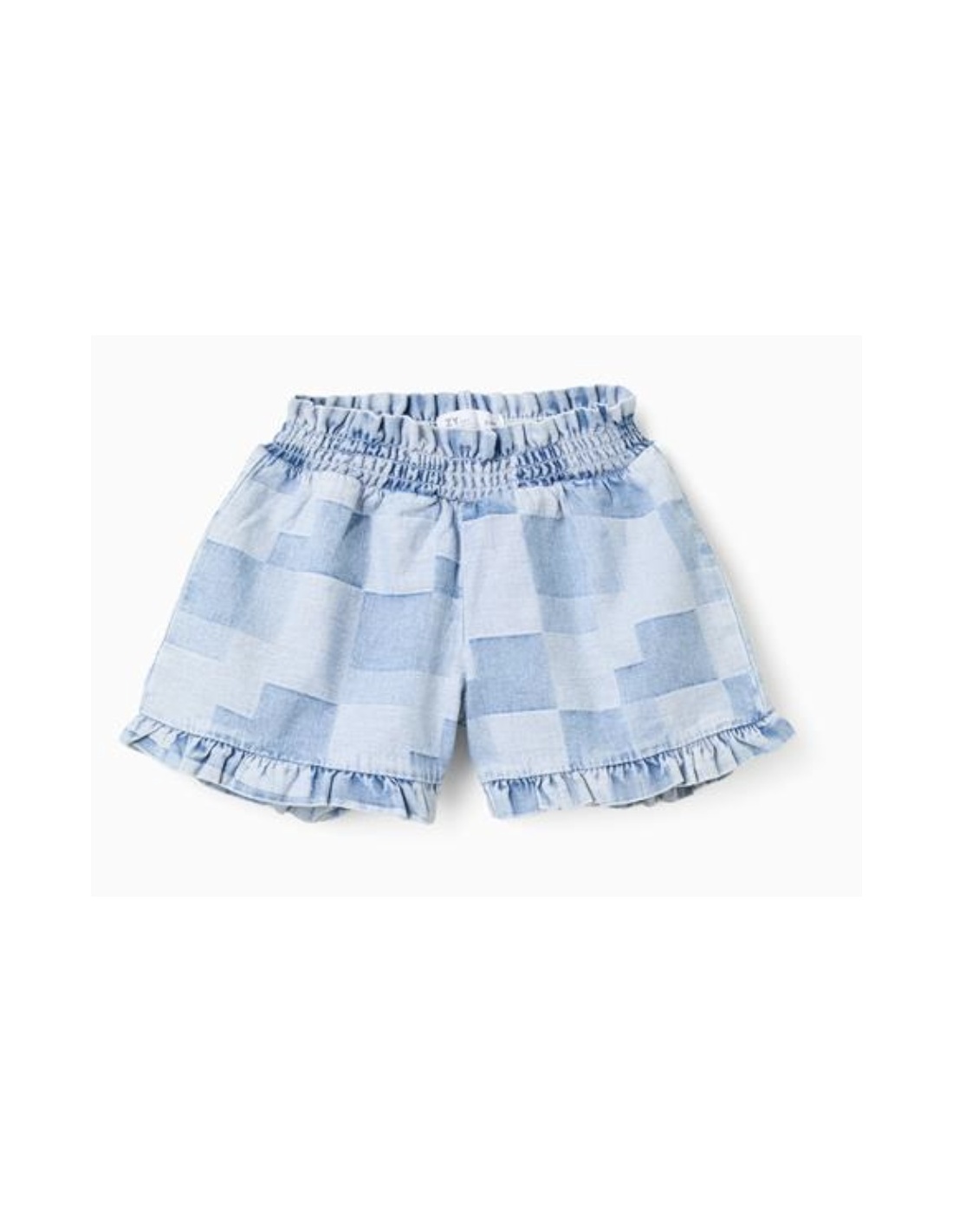 Pantalón corto de denim ligero, con un diseño a cuadros que le da un toque moderno y diferente.